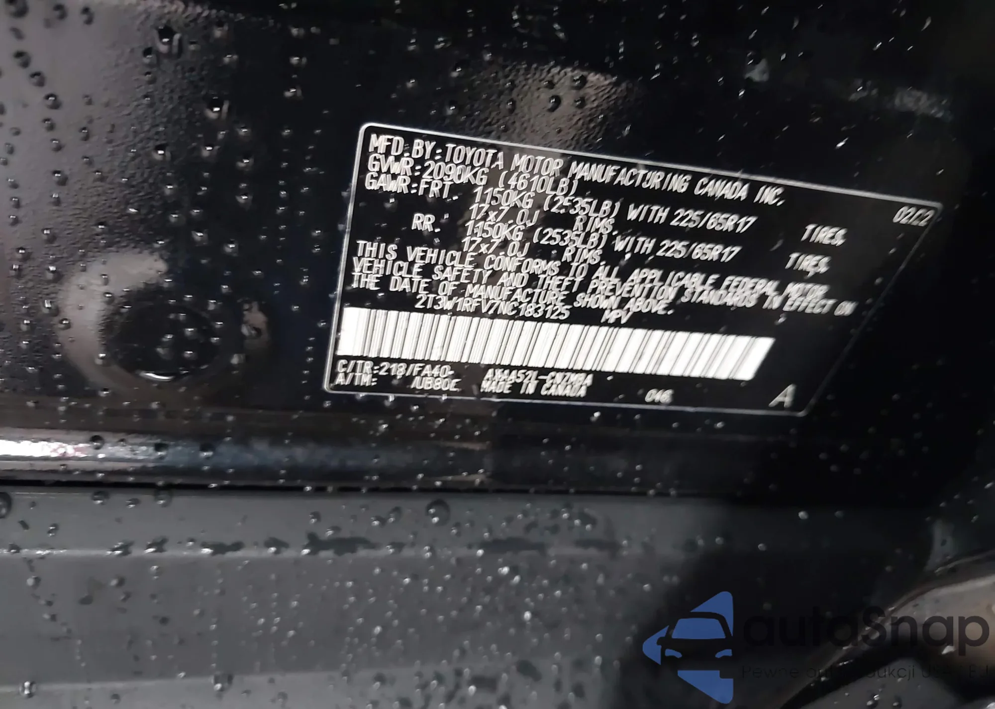 VIN: 2T3W1RFV7NC183125