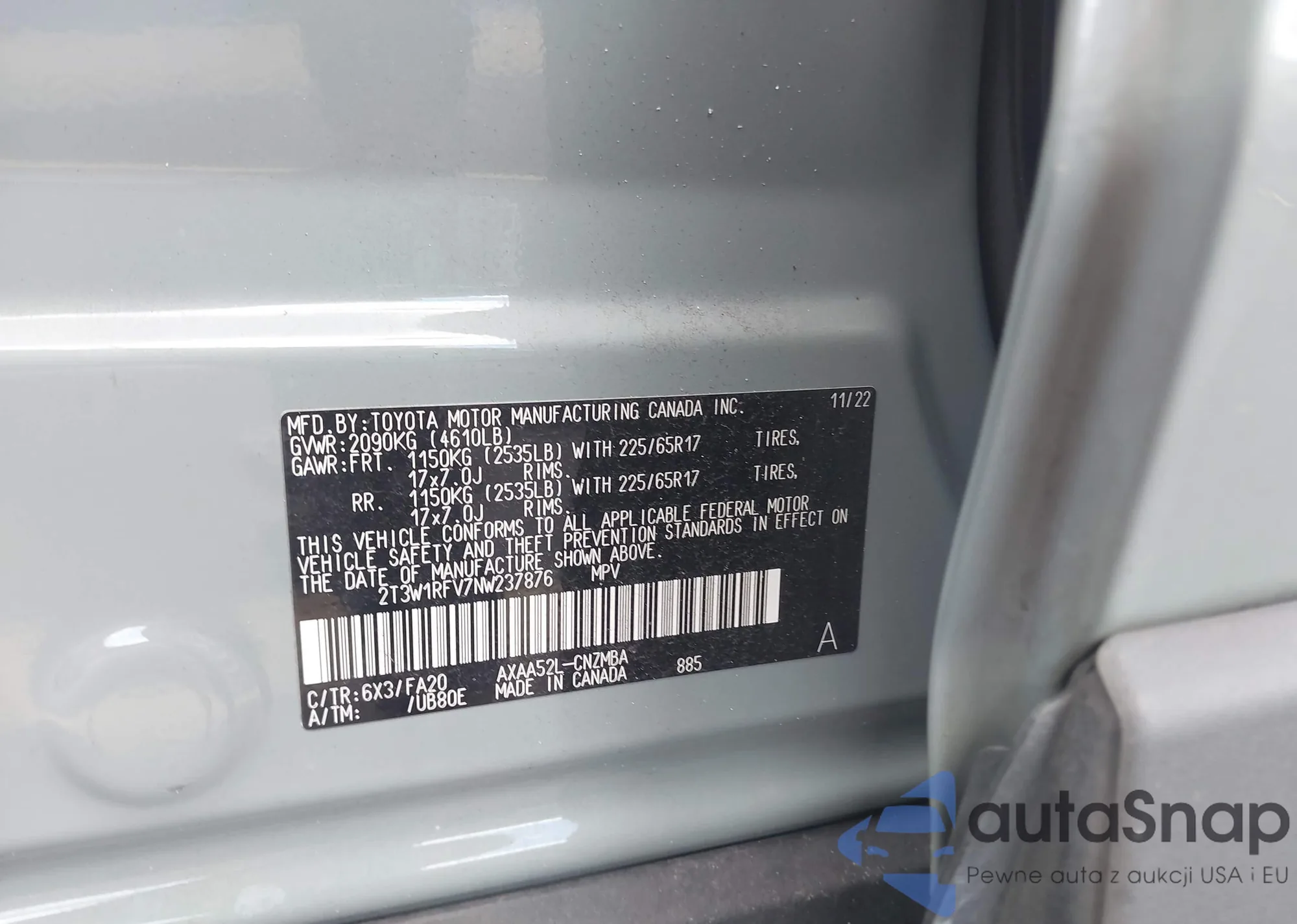VIN: 2T3W1RFV7NW237876