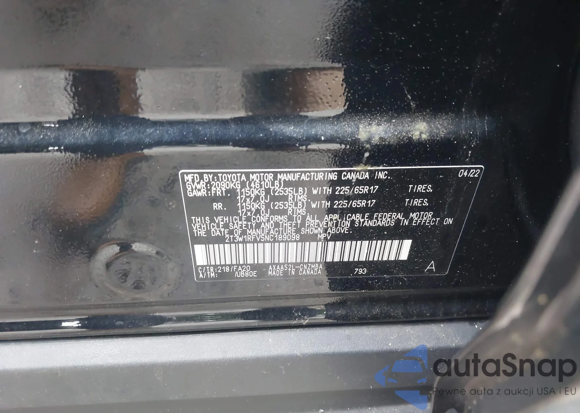 VIN: 2T3W1RFV5NC189098