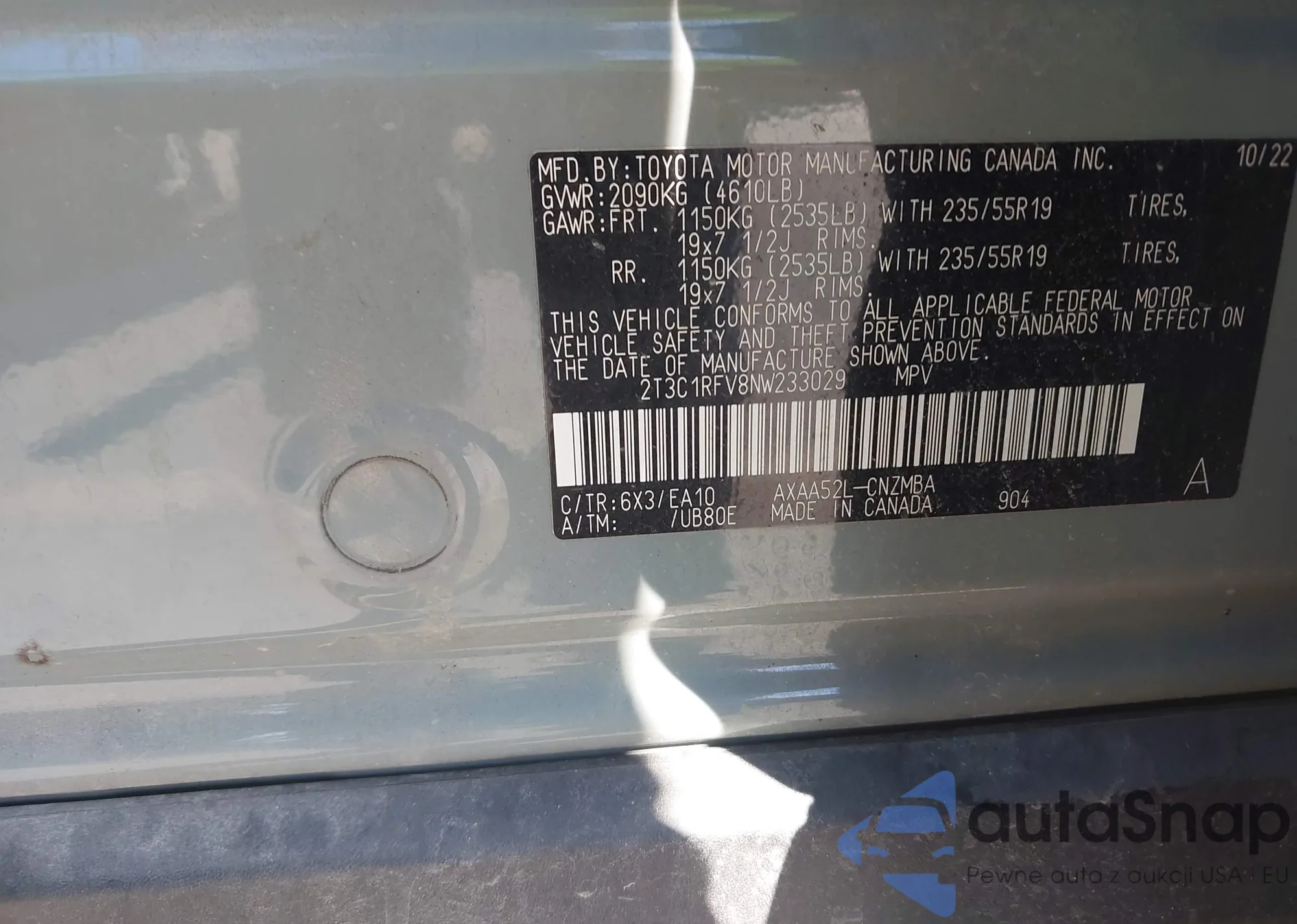 VIN: 2T3C1RFV8NW233029