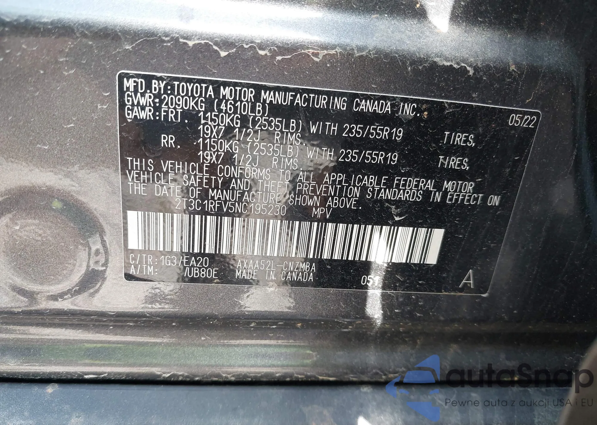 VIN: 2T3C1RFV5NC195230