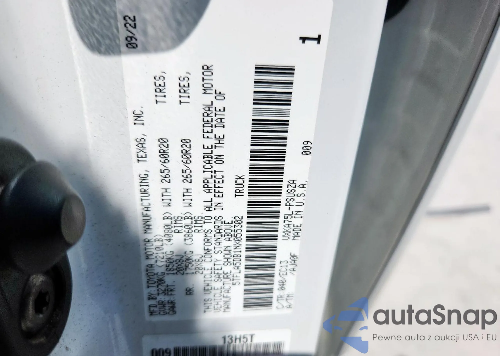 The car Toyota Tundra 2022 (VIN 5TFLA5DB1NX055302) is sold by an unverified seller. We recommend checking the Carfax report and confirming registration possibilities before purchase.
