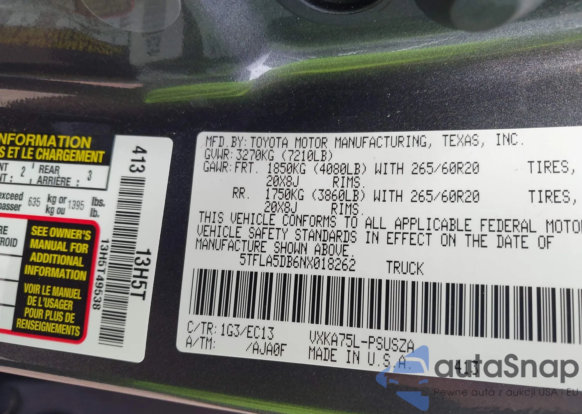 VIN: 5TFLA5DB6NX018262