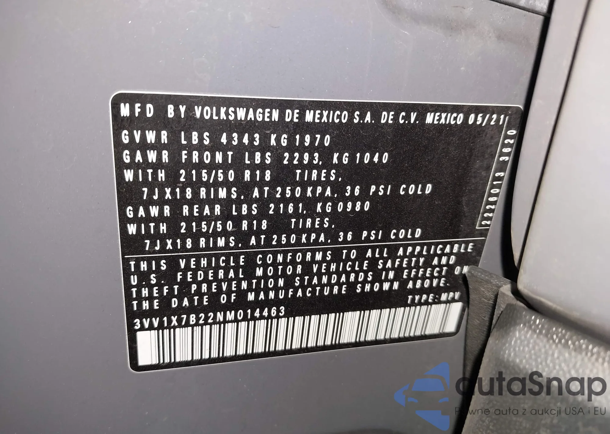 VIN: 3VV1X7B22NM014463