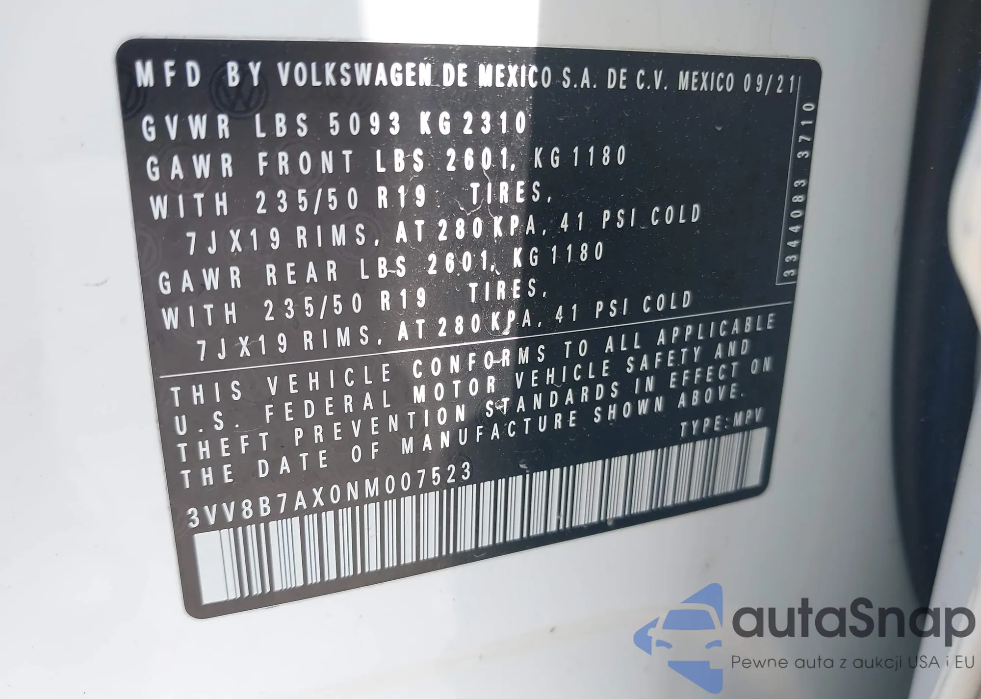 VIN: 3VV8B7AX0NM007523