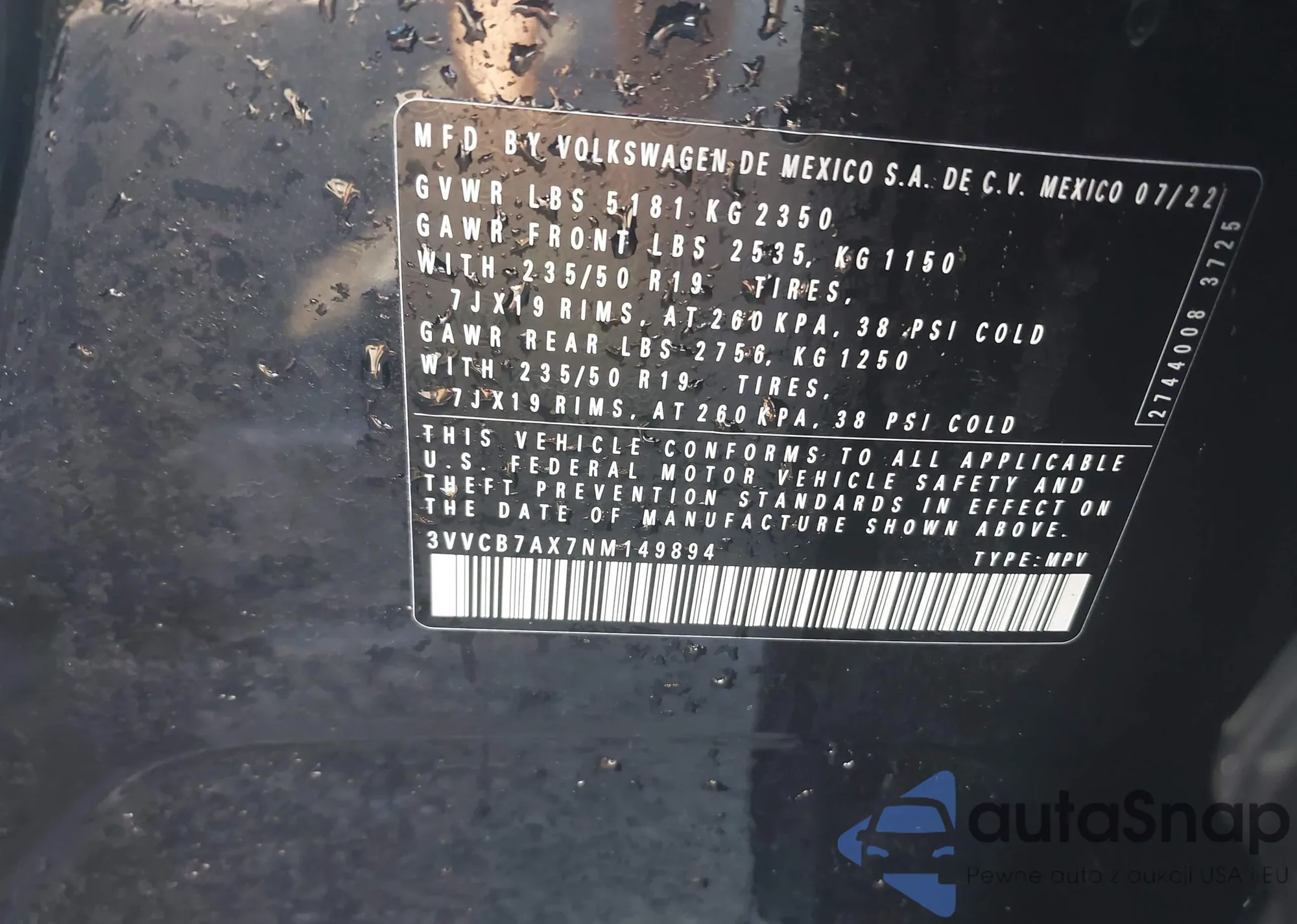 VIN: 3VVCB7AX7NM149894