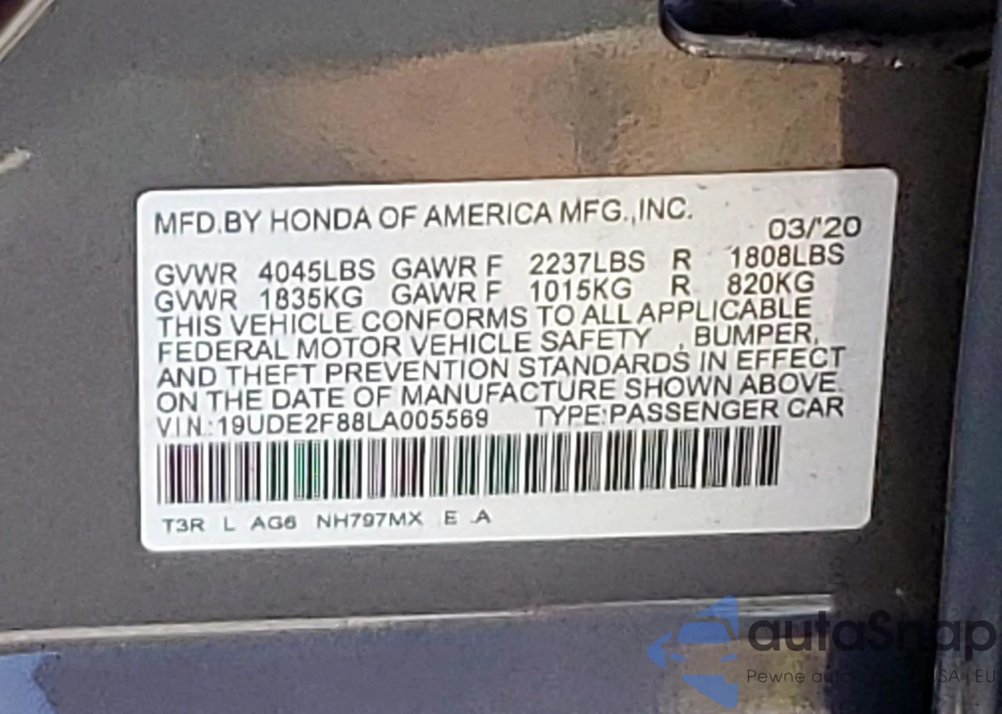 VIN: 19UDE2F88LA005569