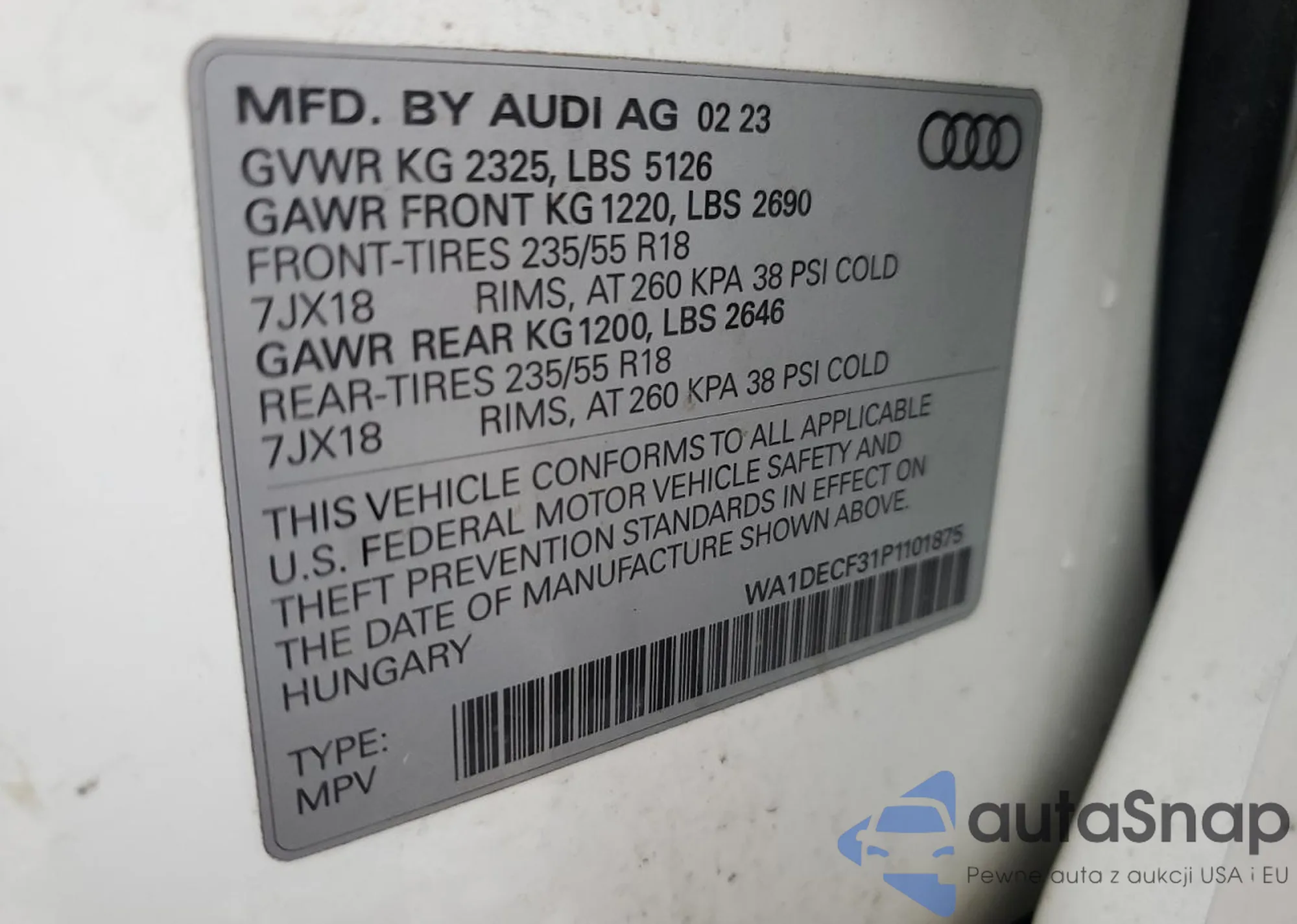 VIN: WA1DECF31P1101875