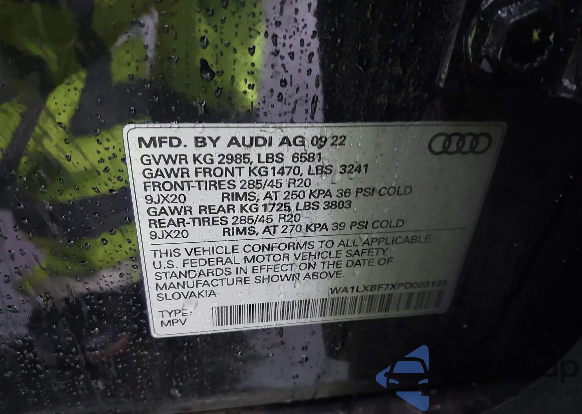 • VIN: WA1LXBF7XPD003185