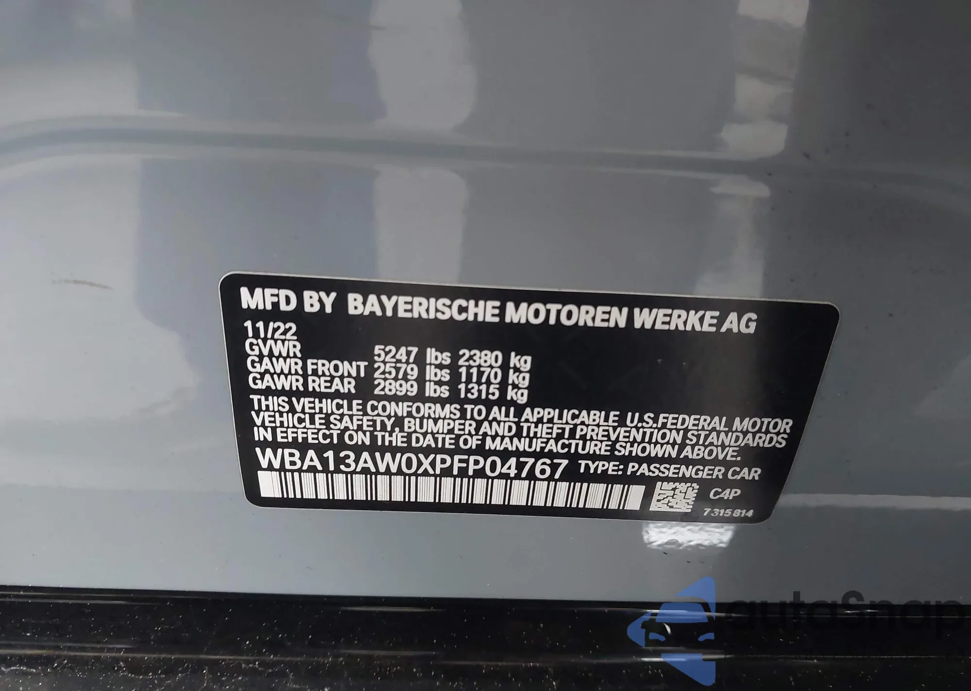 VIN: WBA13AW0XPFP04767