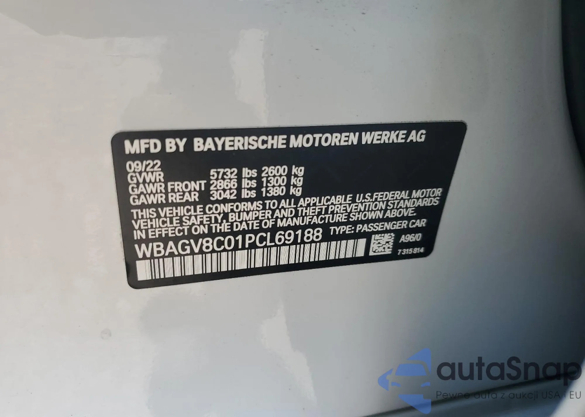 The car BMW 8er 2023 (VIN WBAGV8C01PCL69188) has documents that prevent registration. Export and registration may be difficult. Contact AutaSnap experts to find alternatives.
