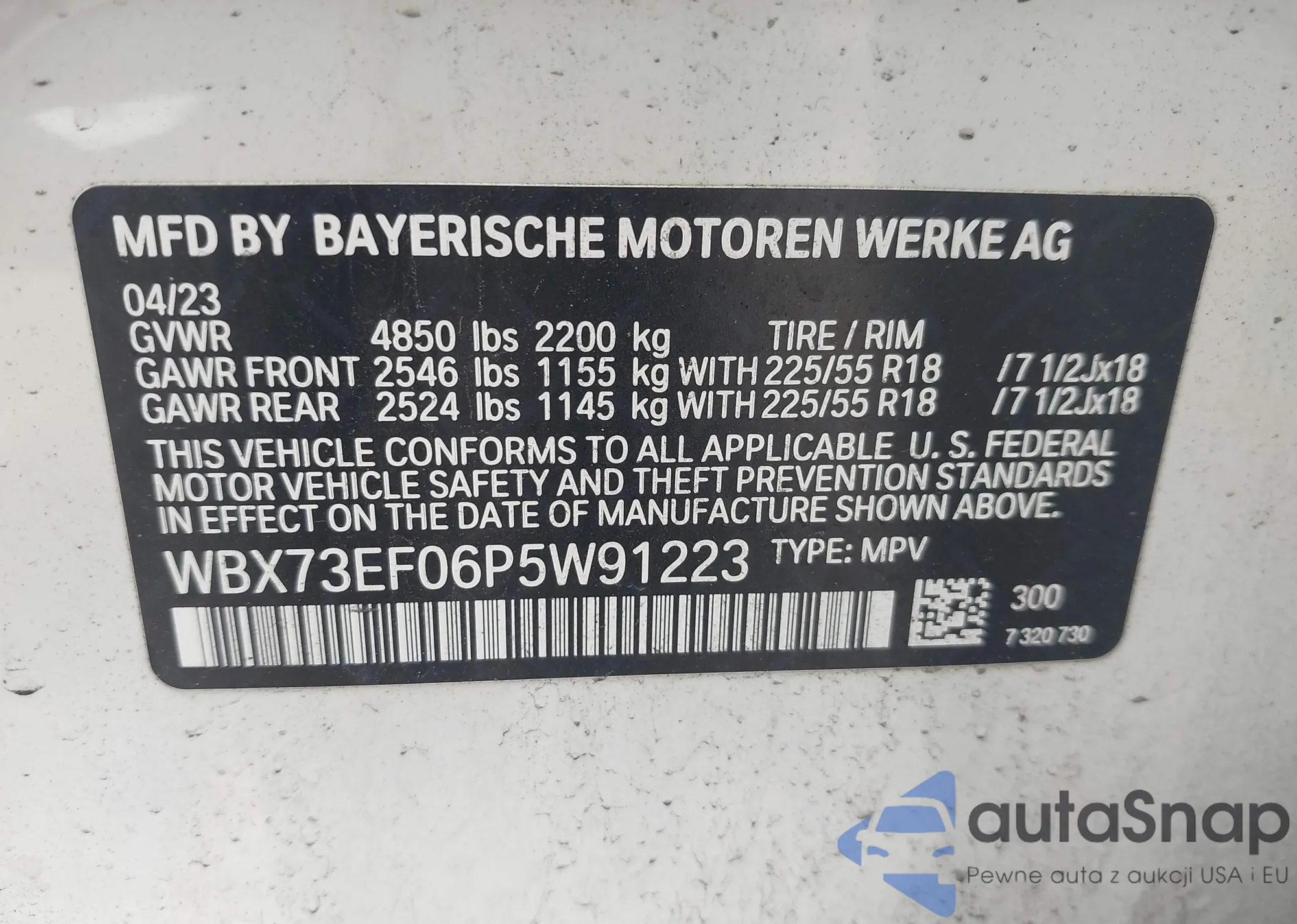 VIN: WBX73EF06P5W91223
