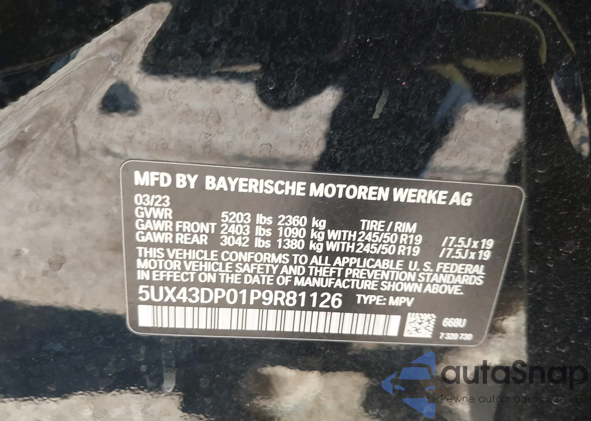 • VIN: 5UX43DP01P9R81126