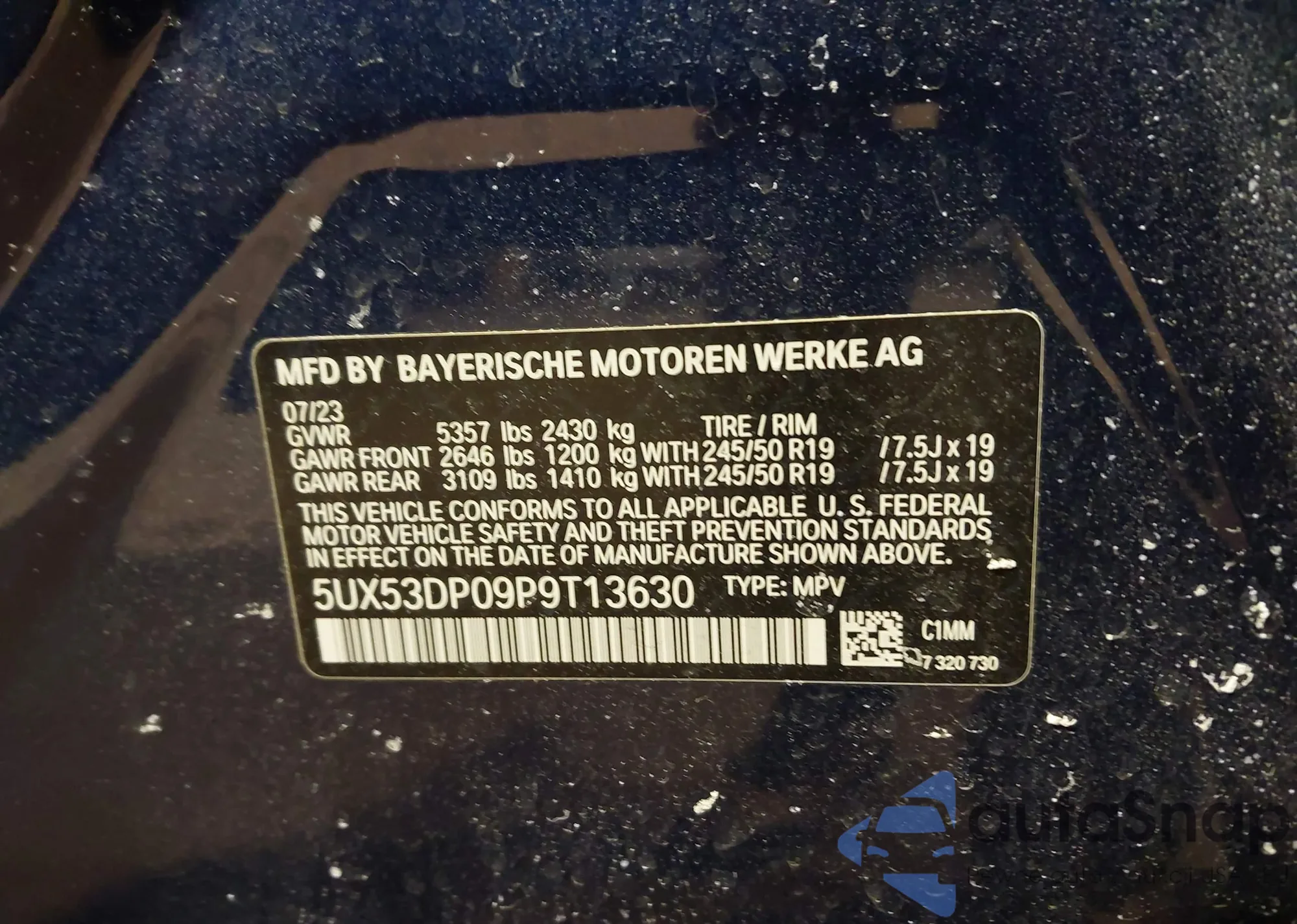 • VIN: 5UX53DP09P9T13630