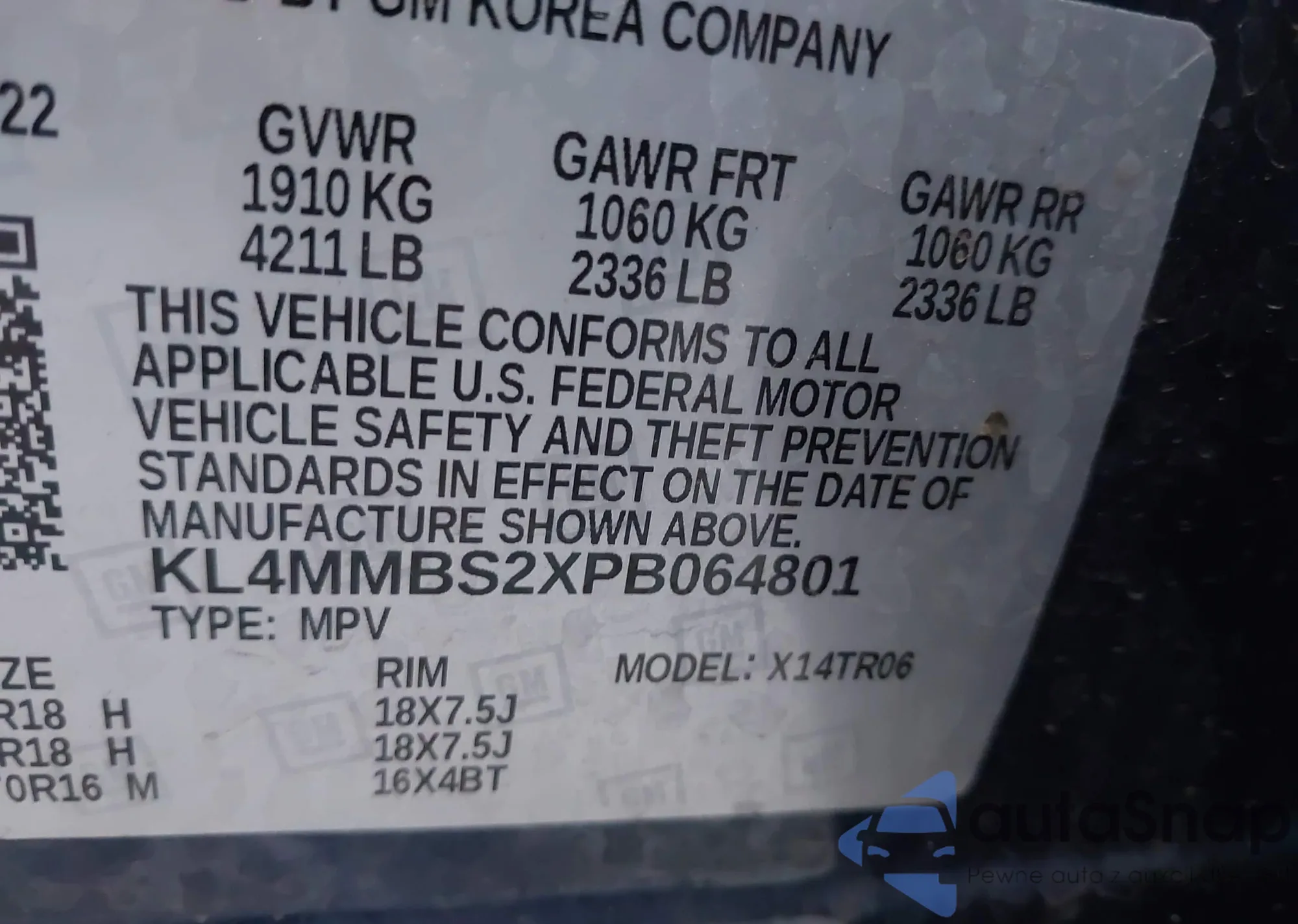 • VIN: KL4MMBS2XPB064801