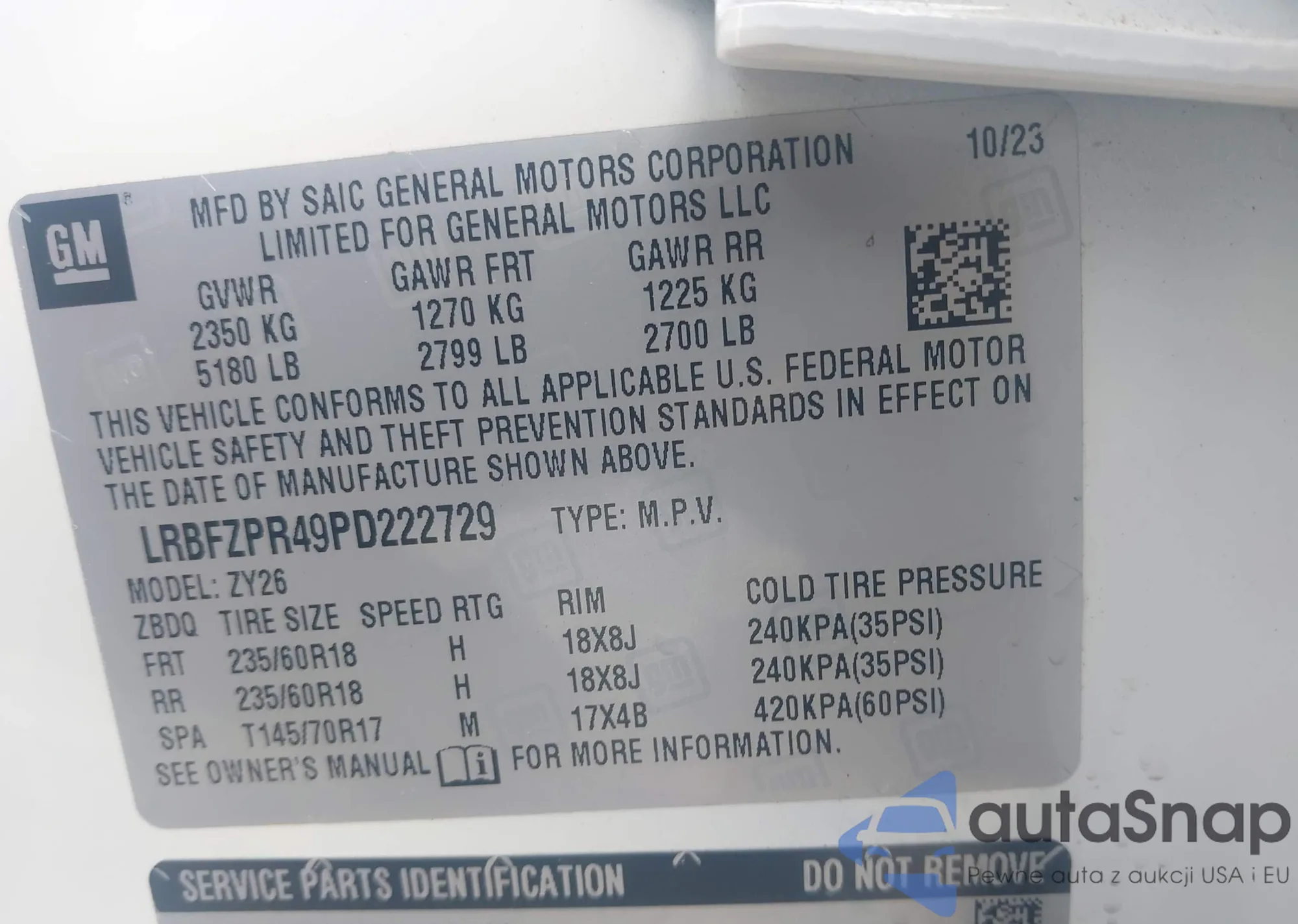 • VIN: LRBFZPR49PD222729