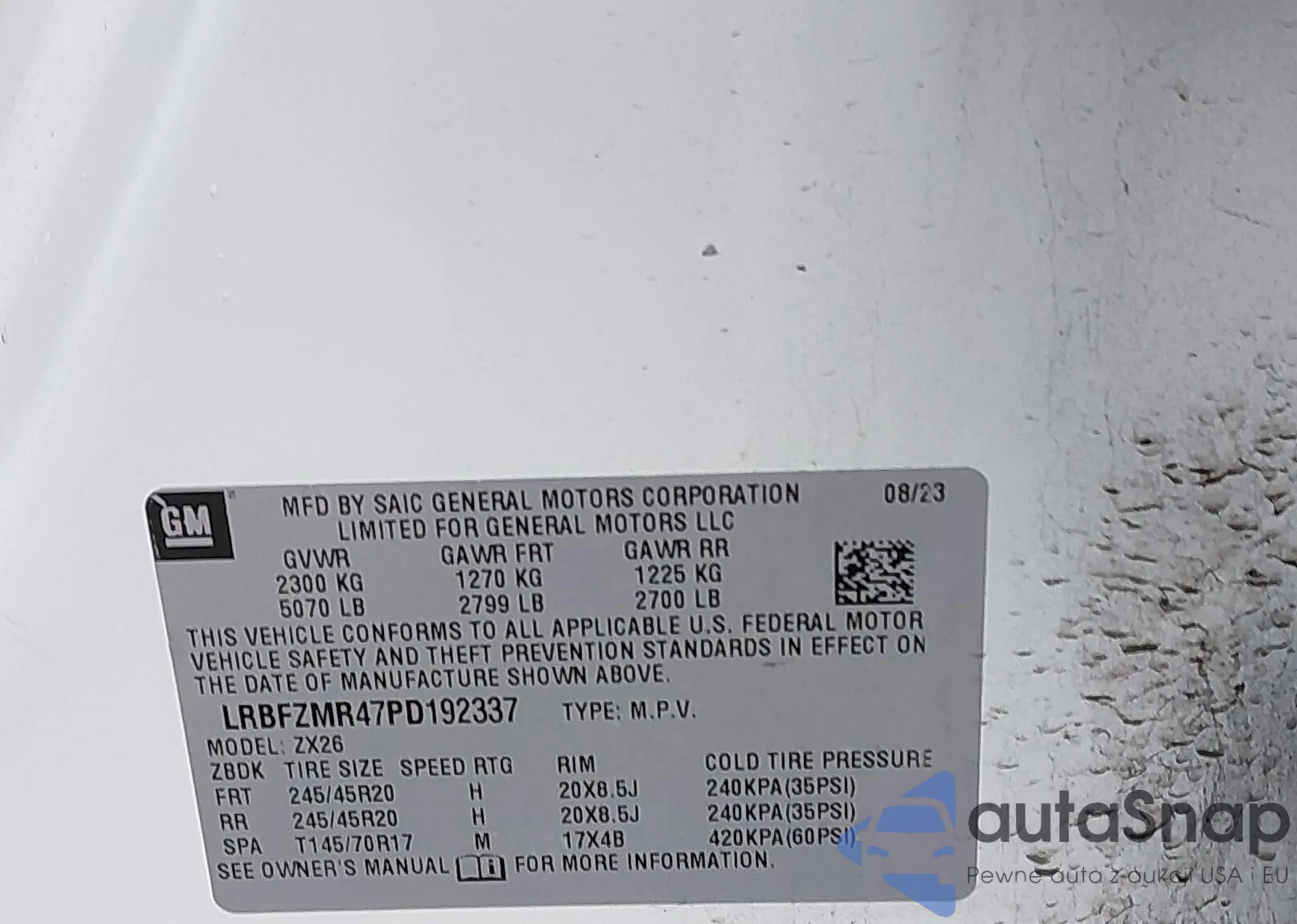 • VIN: LRBFZMR47PD192337