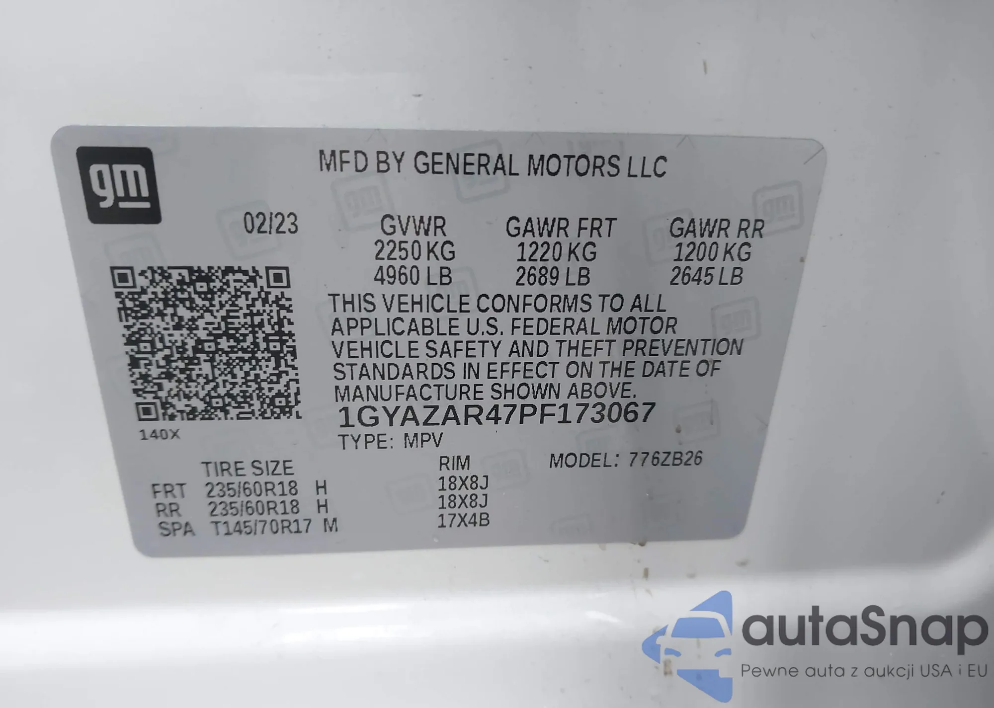 1GYAZAR47PF173067 IAAI