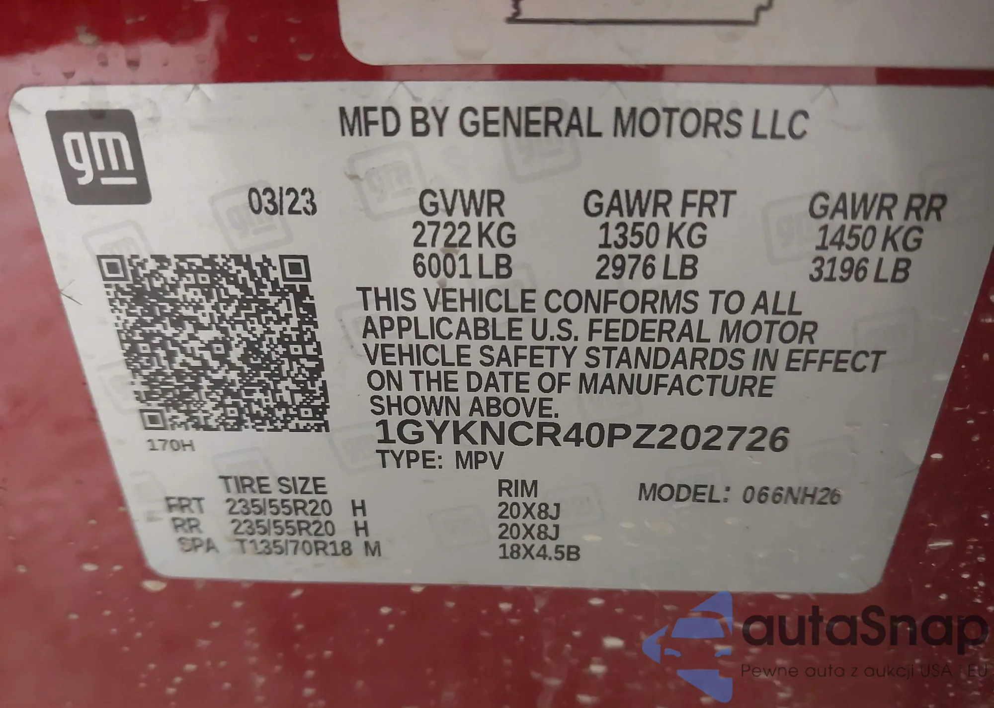 • VIN: 1GYKNCR40PZ202726