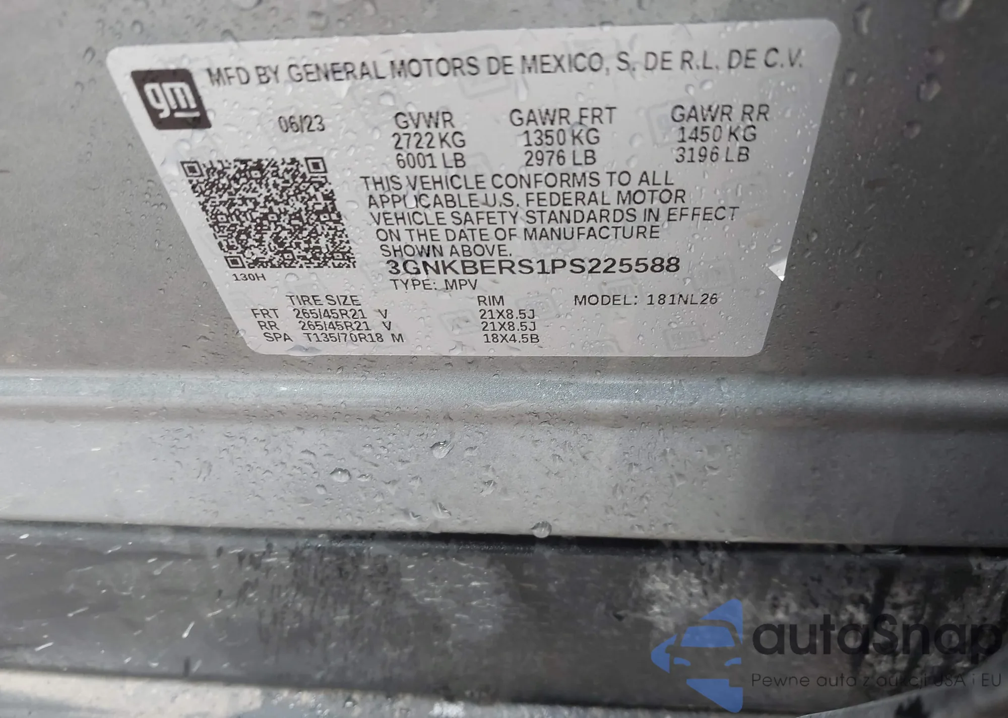 VIN: 3GNKBERS1PS225588