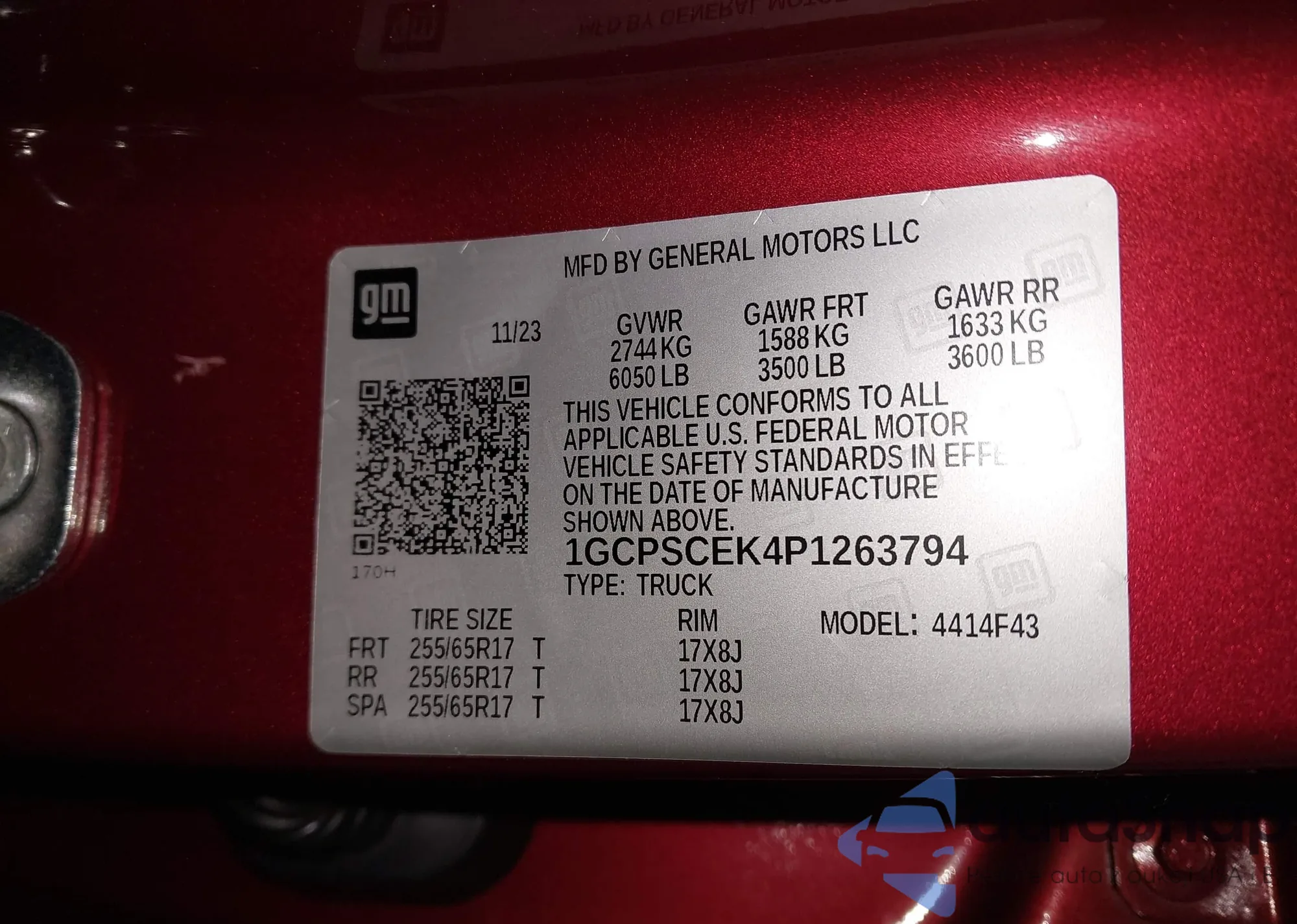 The car Chevrolet Colorado 2023 (VIN 1GCPSCEK4P1263794) has not been auctioned before. The documents are clean, and the mileage matches or is below the market average. Sold by an insurance company – we recommend purchase. Delivery to the port will take approx. 6–8 weeks.