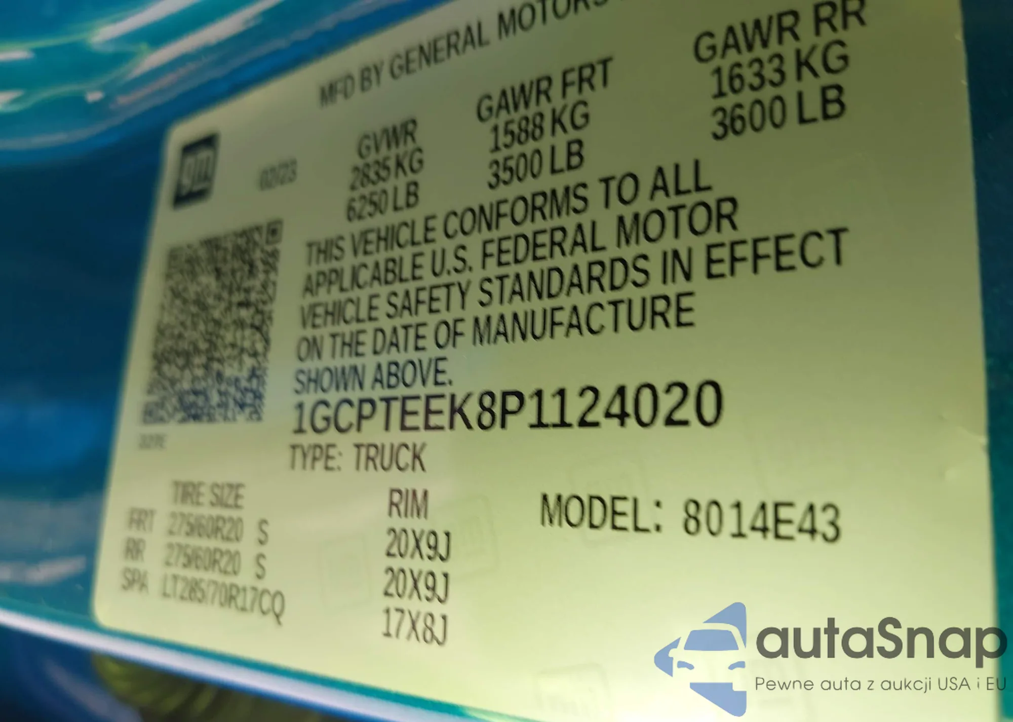 VIN: 1GCPTEEK8P1124020