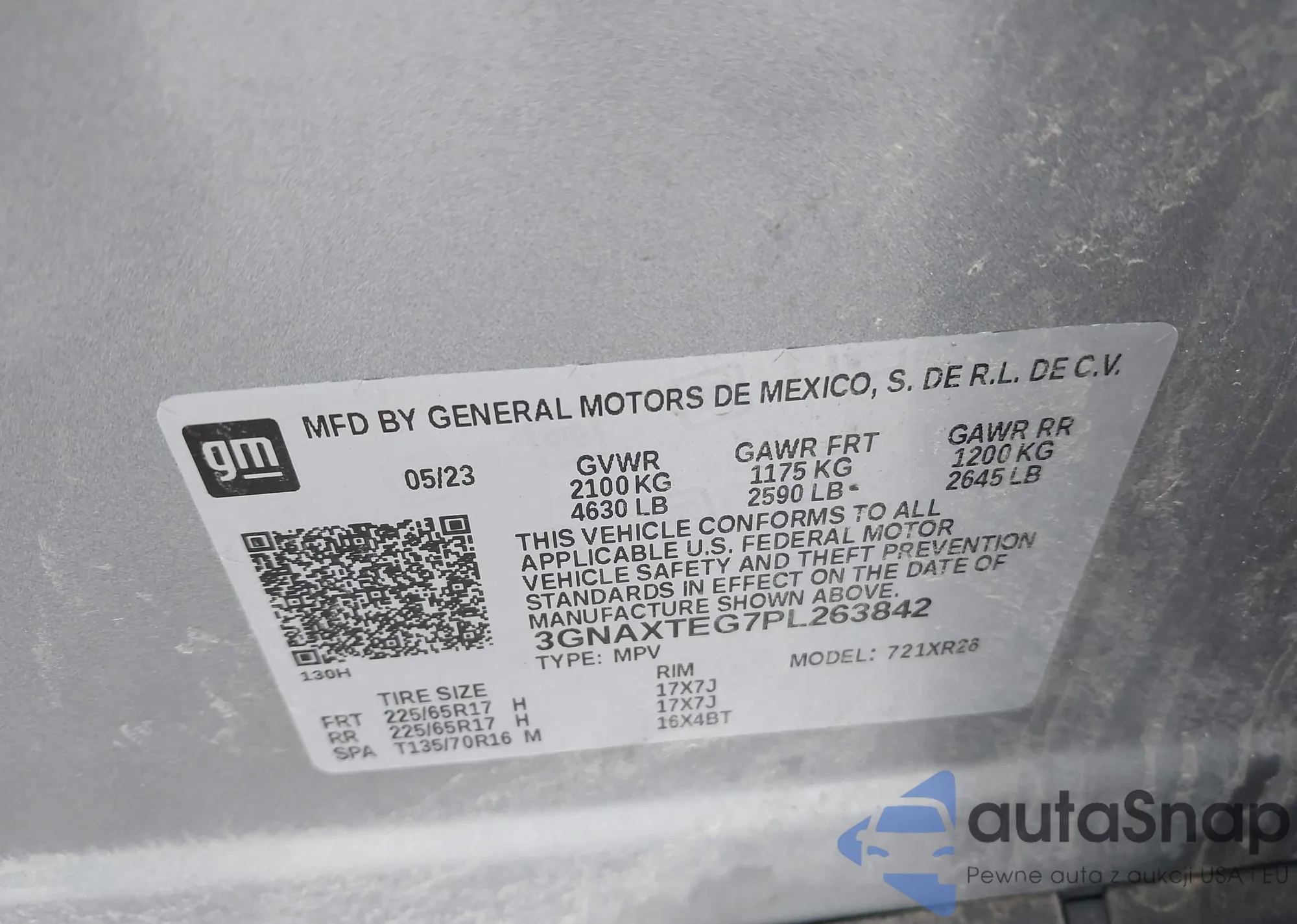 • VIN: 3GNAXTEG7PL263842