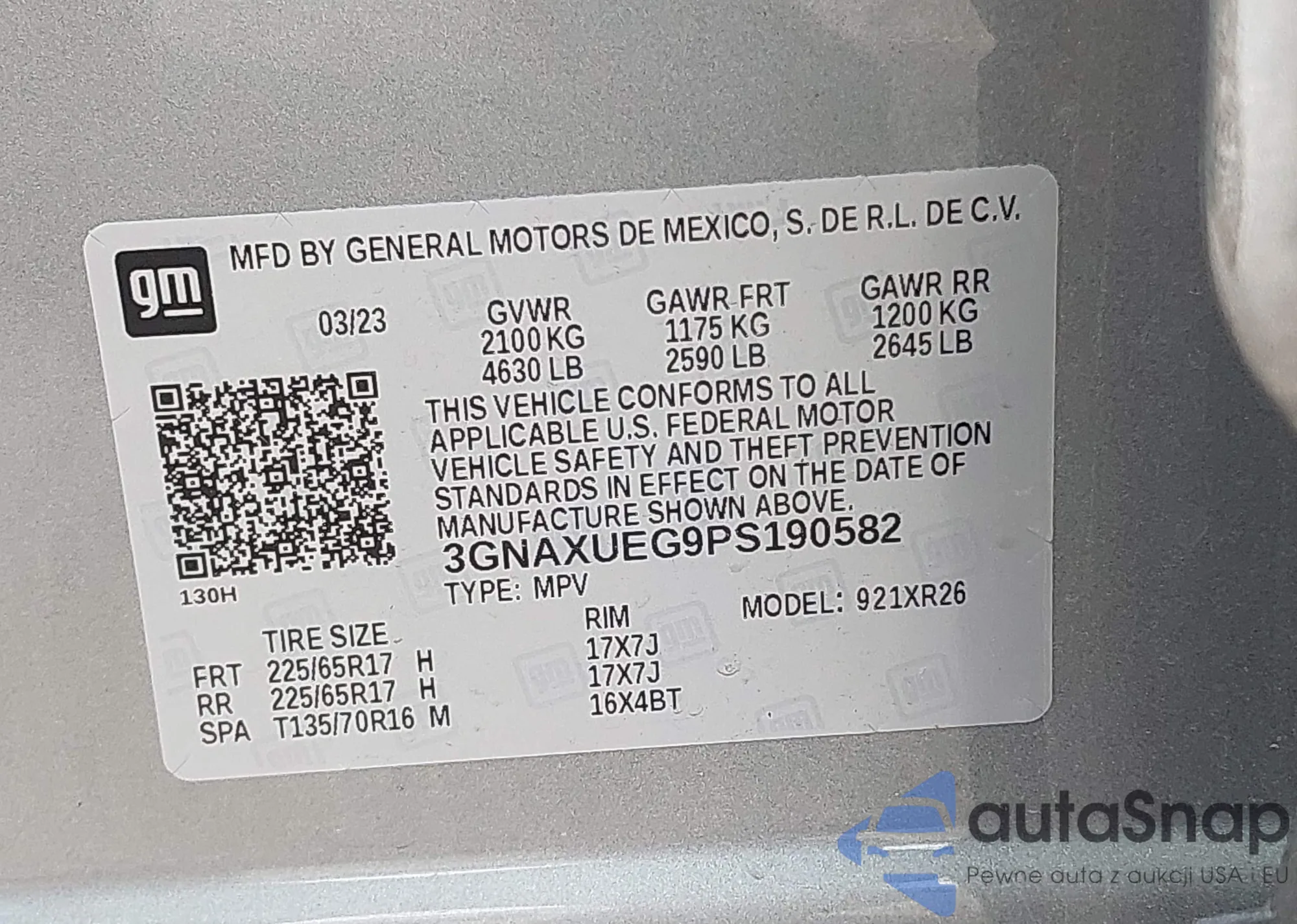 VIN: 3GNAXUEG9PS190582