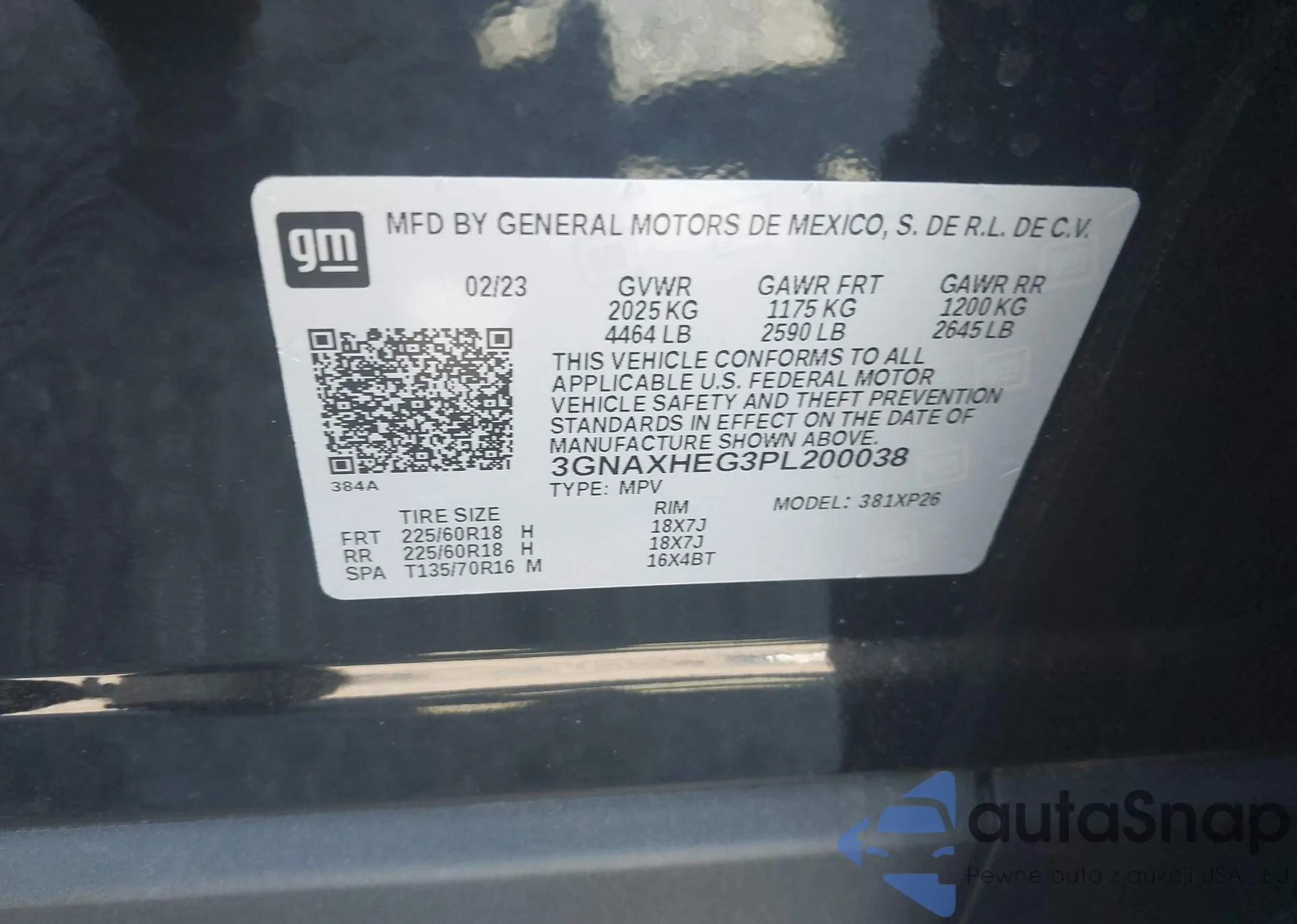 VIN: 3GNAXHEG3PL200038