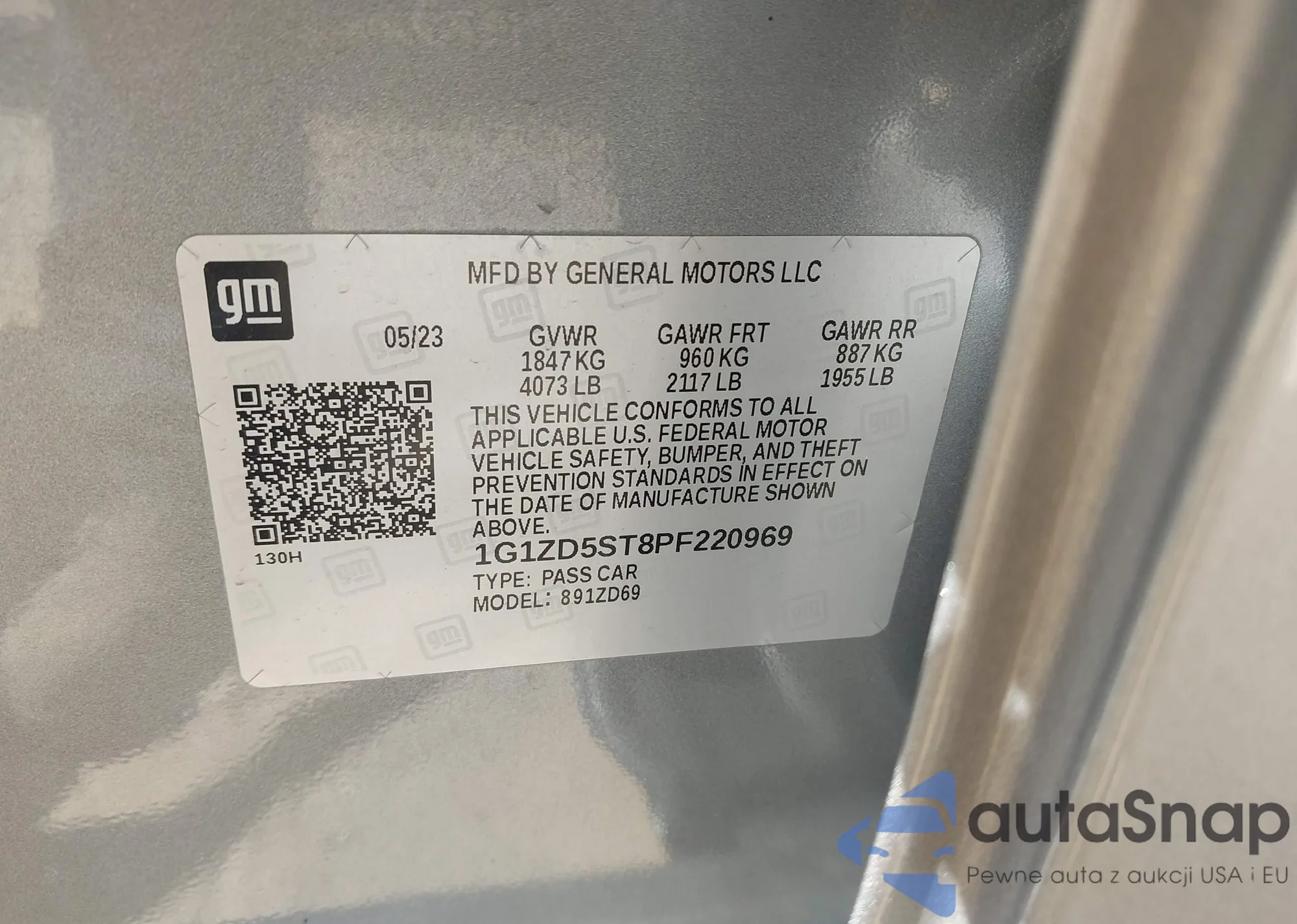 VIN: 1G1ZD5ST8PF220969