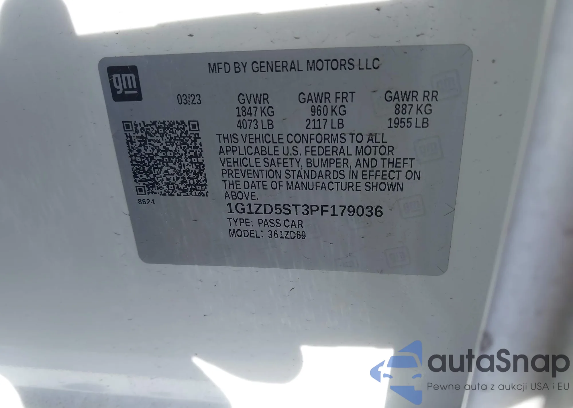 The car Chevrolet Malibu 2023 (VIN 1G1ZD5ST3PF179036) has not been auctioned before. The documents are clean, and the mileage matches or is below the market average. Sold by an insurance company – we recommend purchase. Delivery to the port will take approx. 6–8 weeks.
