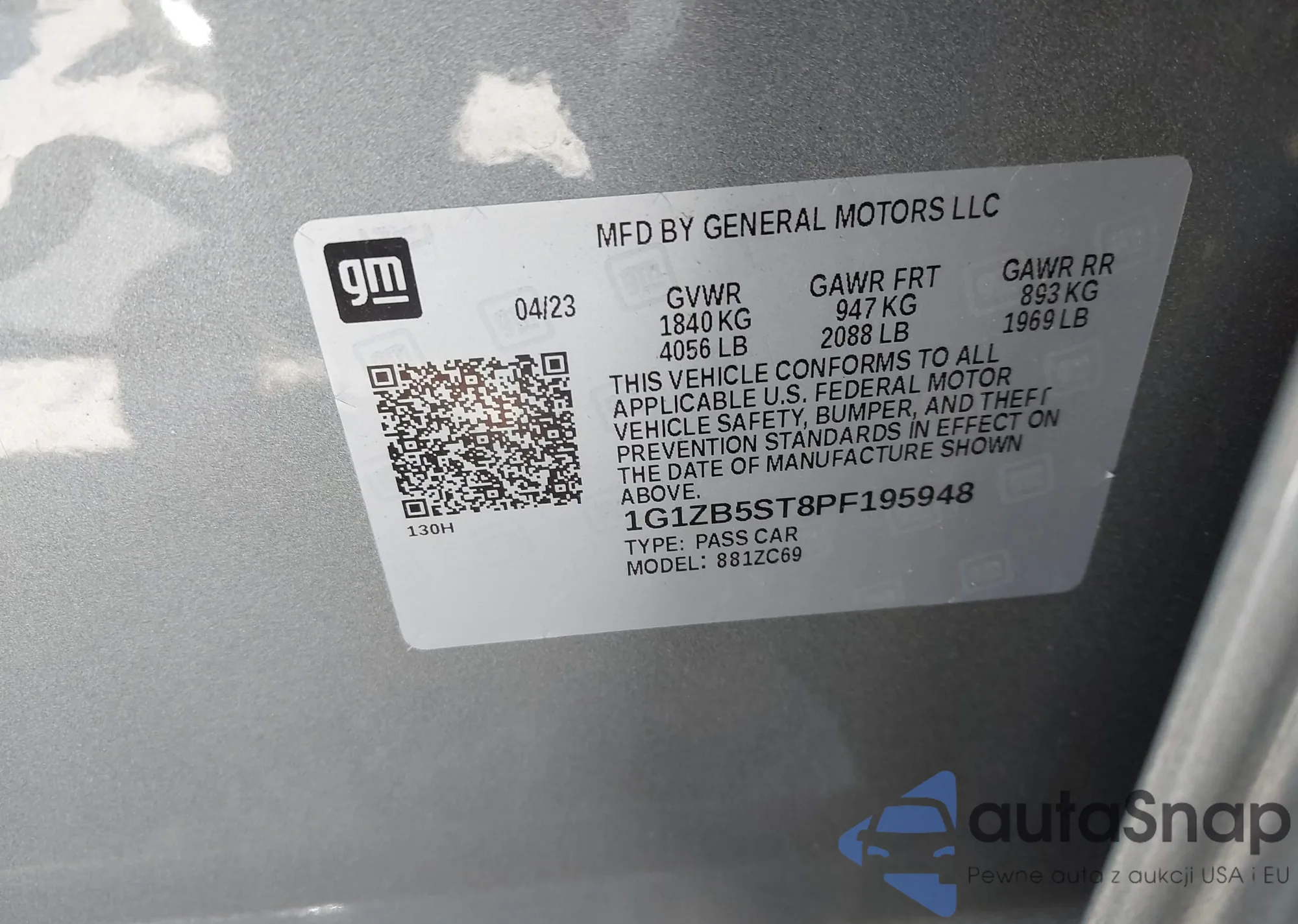 VIN: 1G1ZB5ST8PF195948