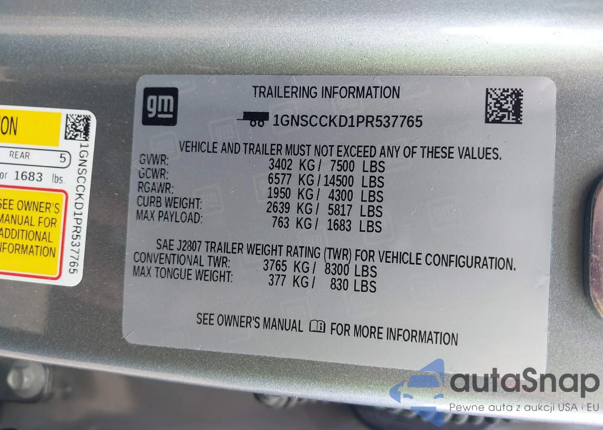 VIN: 1GNSCCKD1PR537765