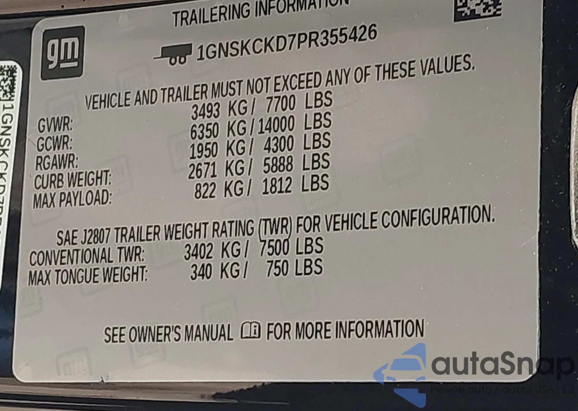 The car Chevrolet Suburban 2023 (VIN 1GNSKCKD7PR355426) is sold by an unverified seller. We recommend checking the Carfax report and confirming registration possibilities before purchase.