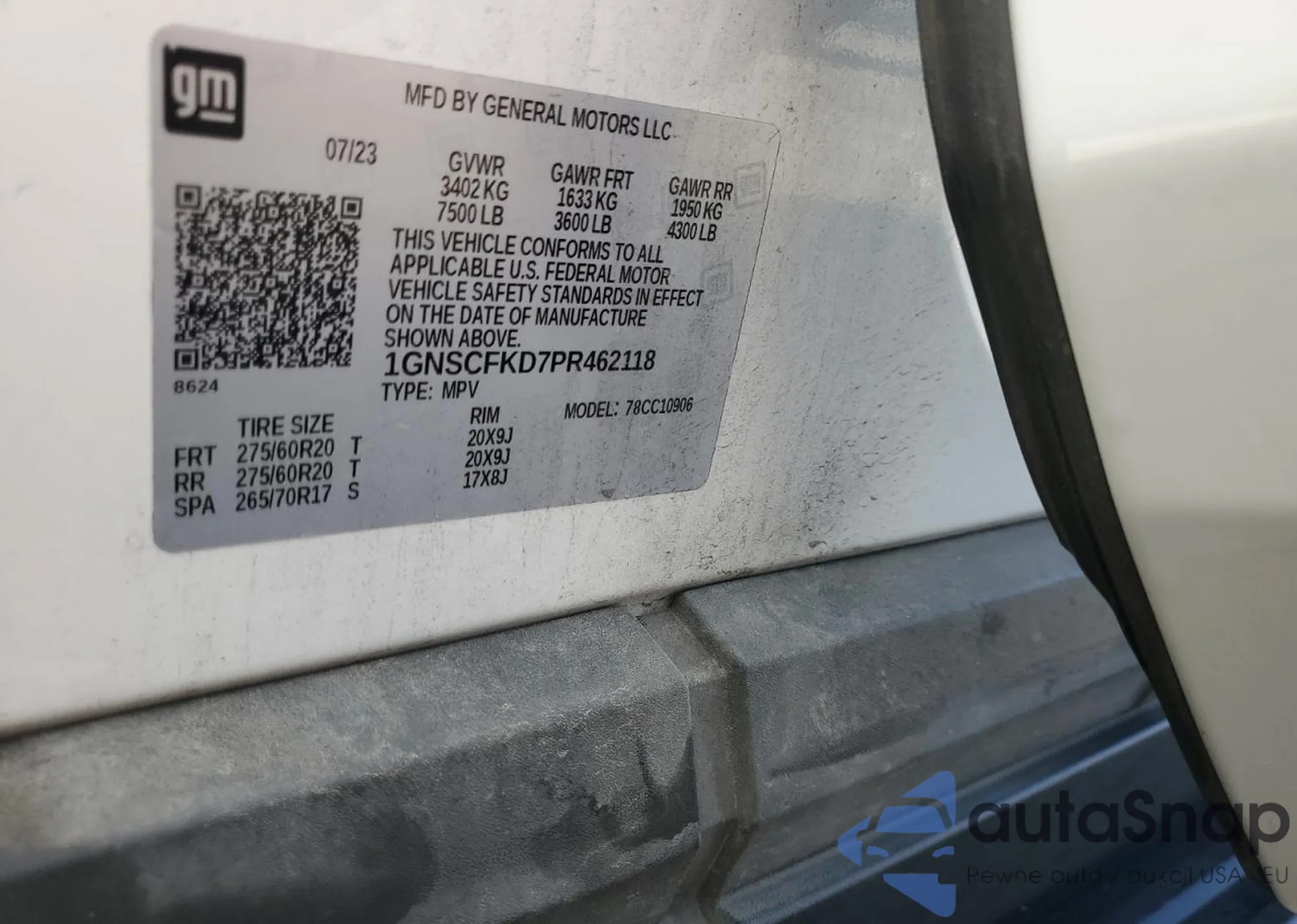 VIN: 1GNSCFKD7PR462118