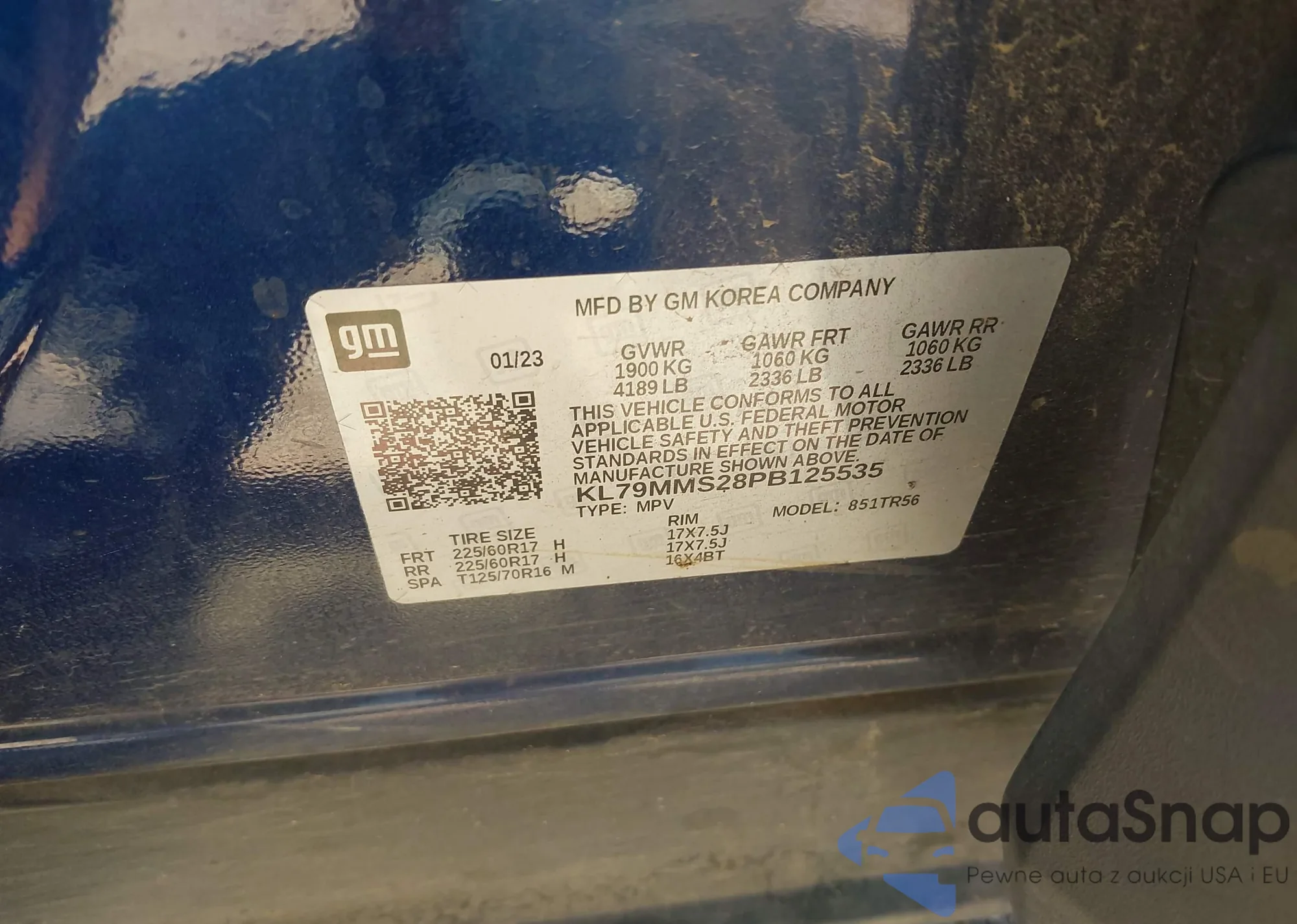 The car Chevrolet TrailBlazer 2023 (VIN KL79MMS28PB125535) has not been auctioned before. The documents are clean, and the mileage matches or is below the market average. Sold by an insurance company – we recommend purchase. Delivery to the port will take approx. 6–8 weeks.