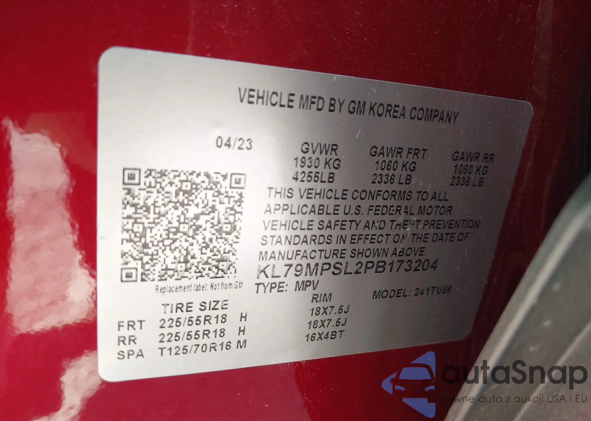 The car Chevrolet TrailBlazer 2023 (VIN KL79MPSL2PB173204) has not been auctioned before. The documents are clean, and the mileage matches or is below the market average. Sold by an insurance company – we recommend purchase. Delivery to the port will take approx. 6–8 weeks.
