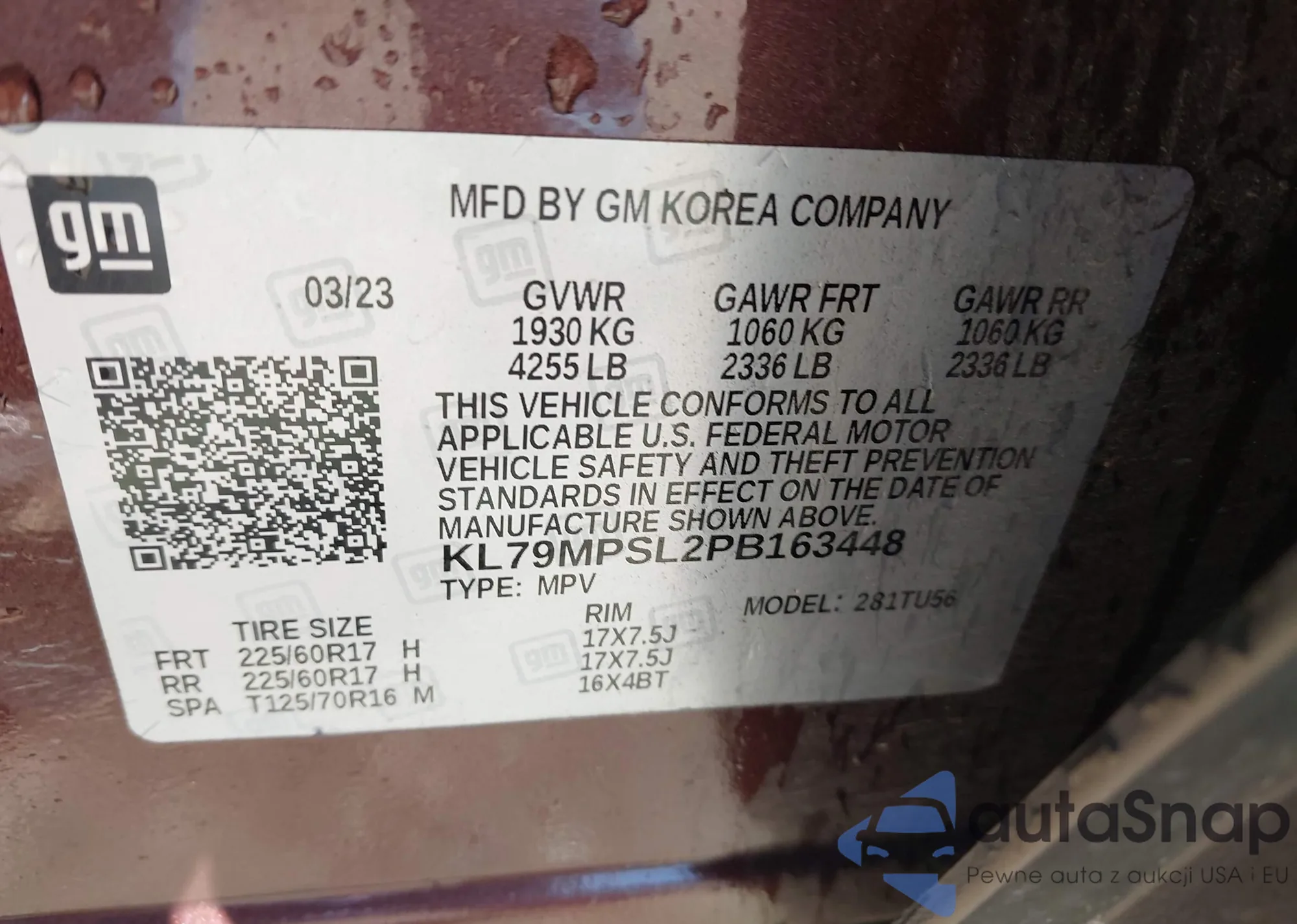 VIN: KL79MPSL2PB163448