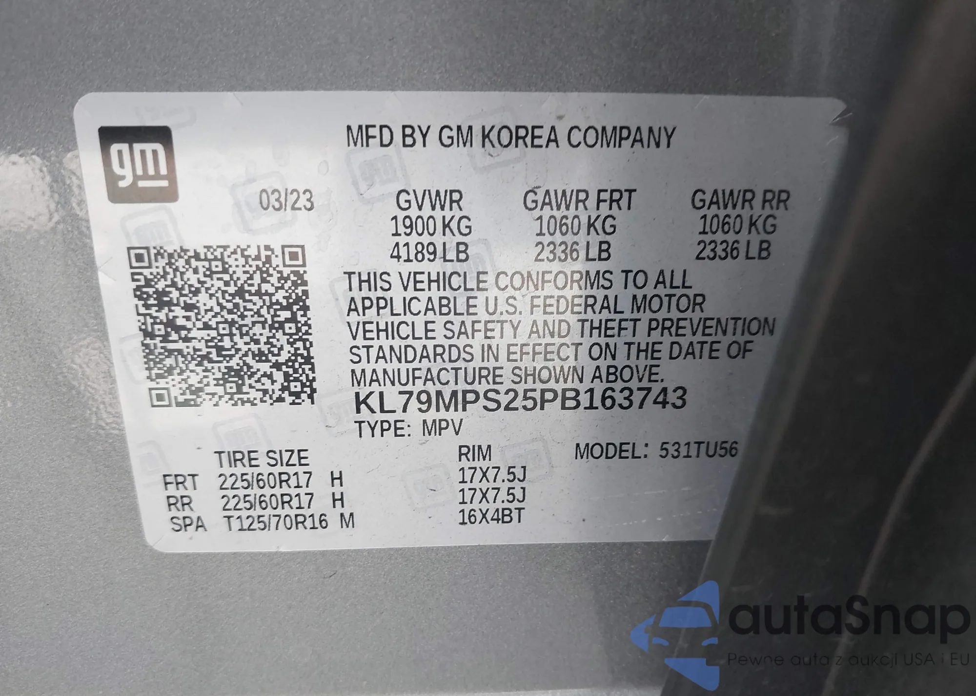 VIN: KL79MPS25PB163743