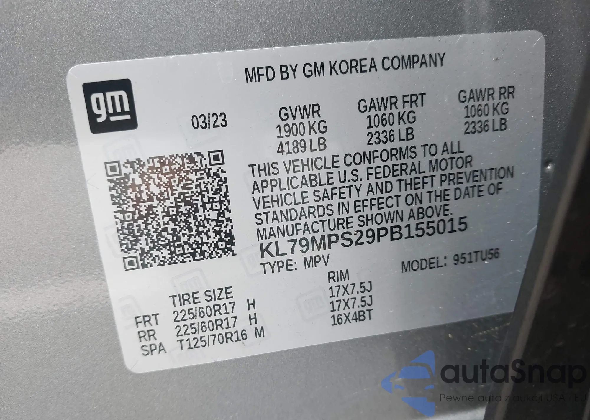 VIN: KL79MPS29PB155015