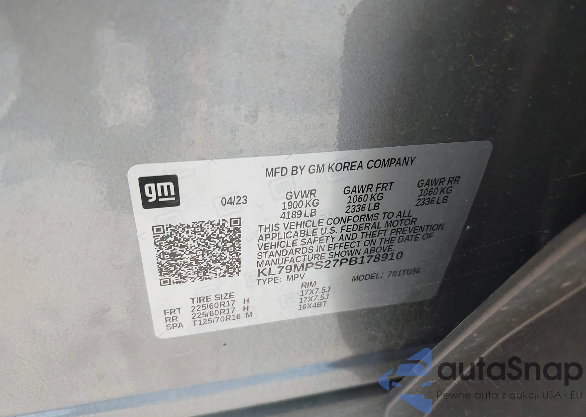 VIN: KL79MPS27PB178910