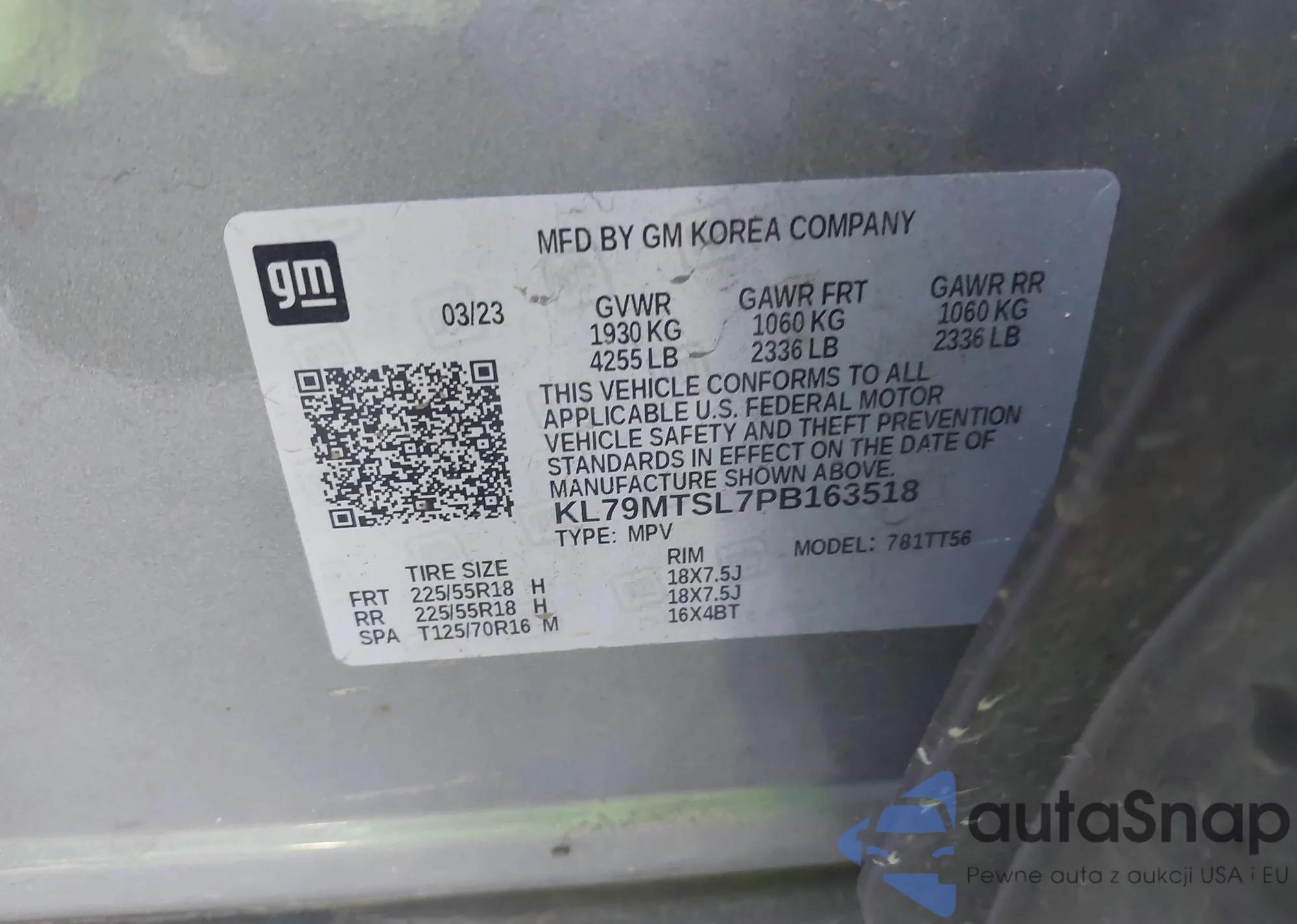 VIN: KL79MTSL7PB163518