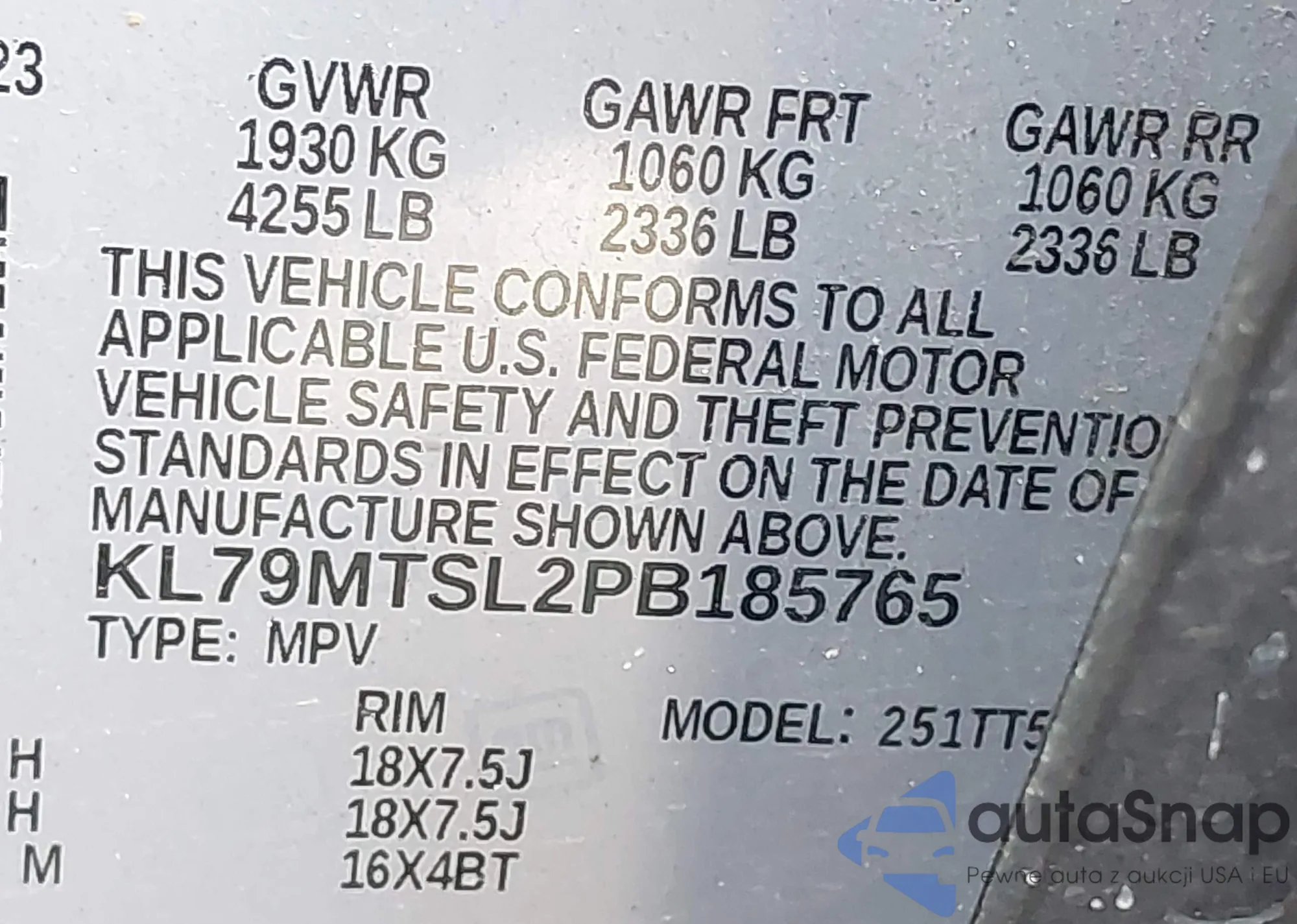 The car Chevrolet TrailBlazer 2023 (VIN KL79MTSL2PB185765) has not been auctioned before. The documents are clean, and the mileage matches or is below the market average. Sold by an insurance company – we recommend purchase. Delivery to the port will take approx. 6–8 weeks.