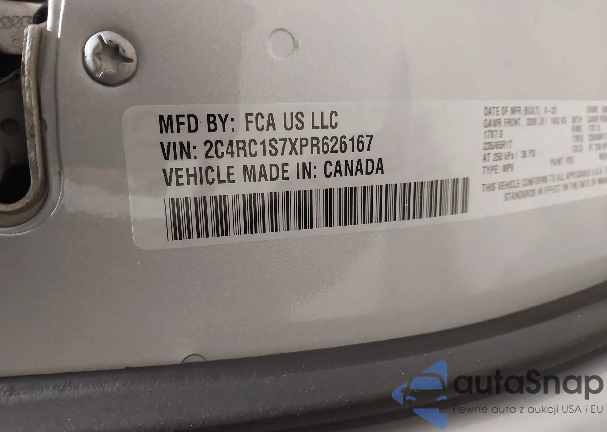 The car Chrysler Pacifica 2023 (VIN 2C4RC1S7XPR626167) has not been auctioned before. The documents are clean, and the mileage matches or is below the market average. Sold by an insurance company – we recommend purchase. Delivery to the port will take approx. 6–8 weeks.