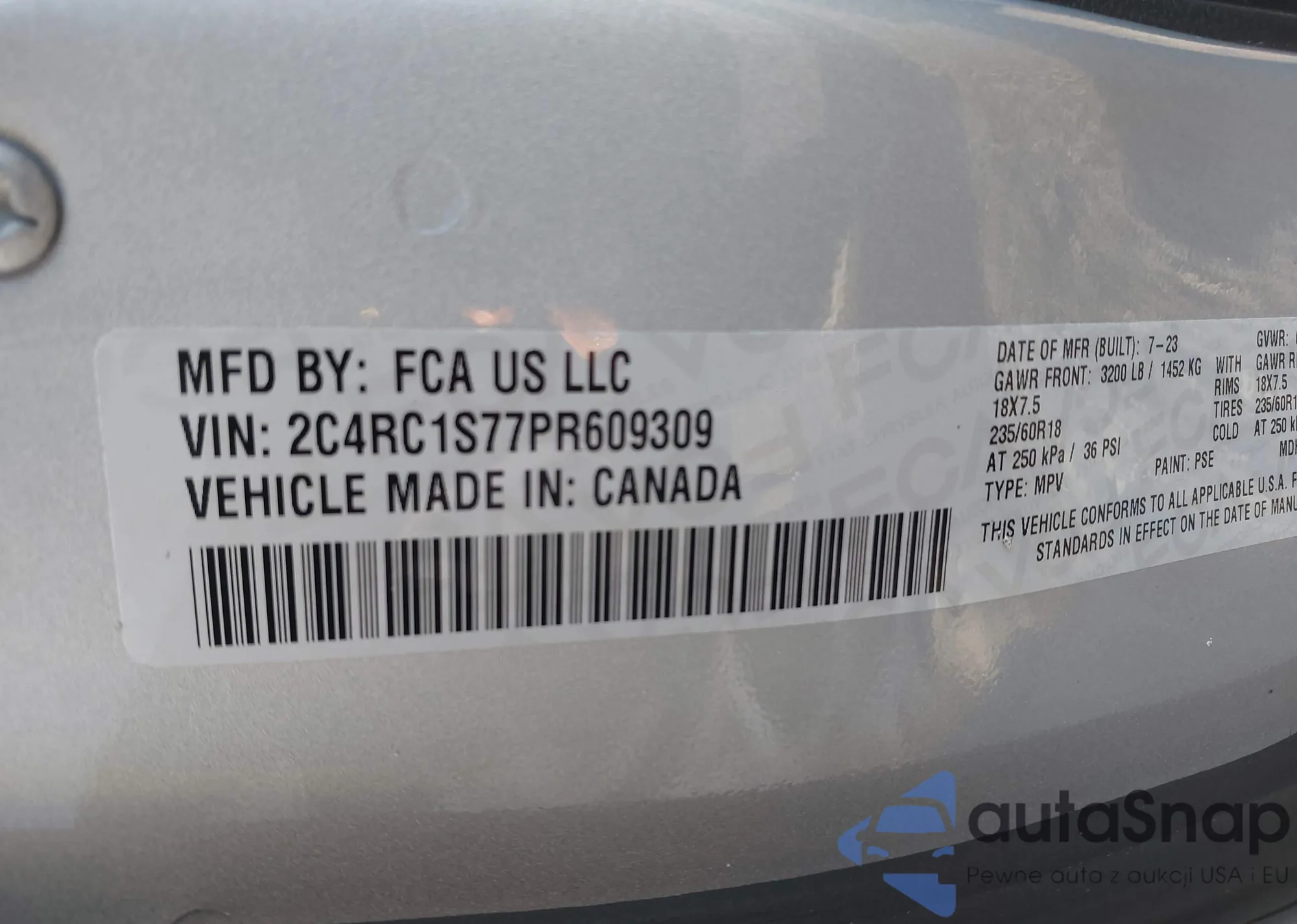 • VIN: 2C4RC1S77PR609309