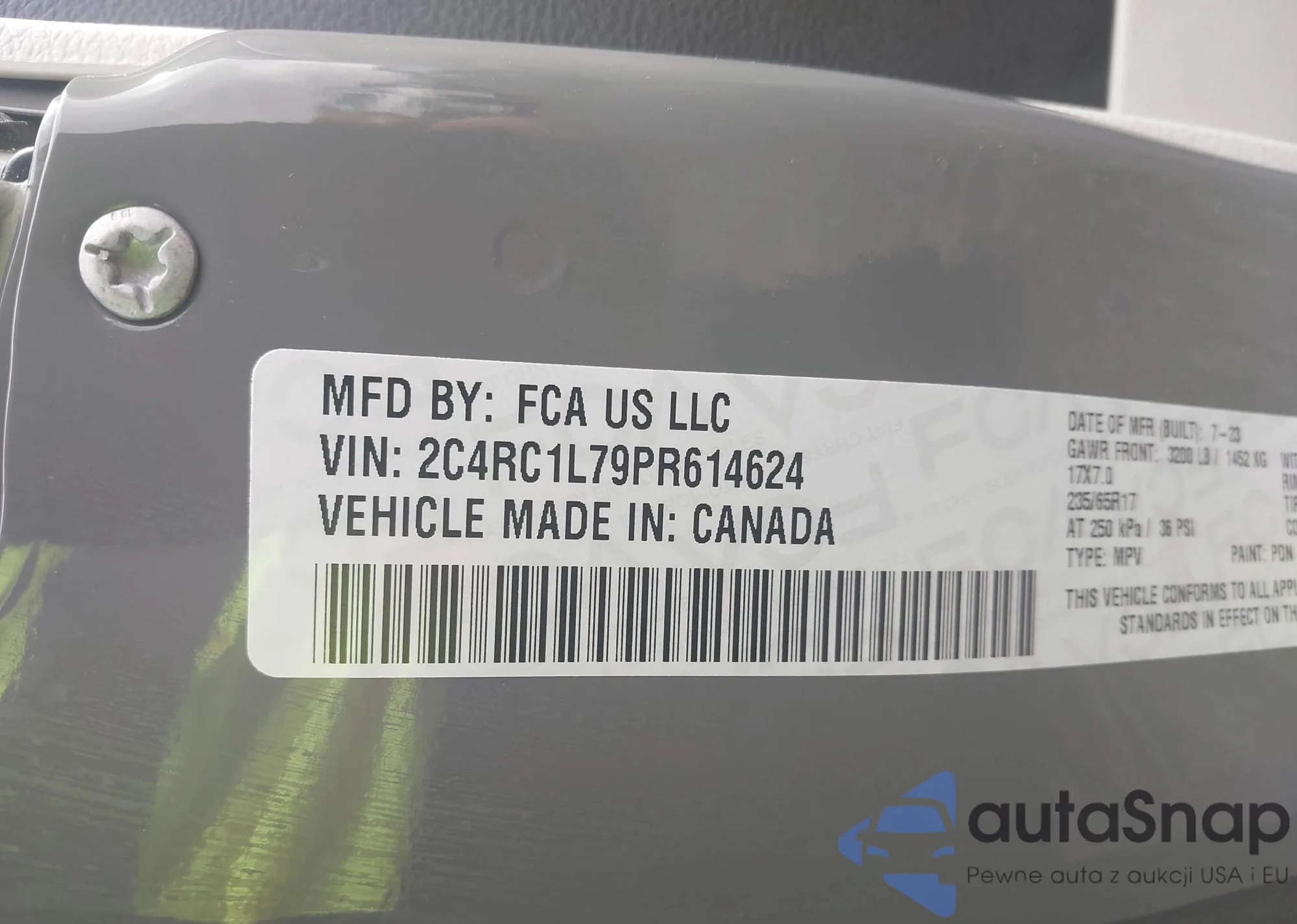 The car Chrysler Pacifica 2023 (VIN 2C4RC1L79PR614624) has not been auctioned before. The documents are clean, and the mileage matches or is below the market average. Sold by an insurance company – we recommend purchase. Delivery to the port will take approx. 6–8 weeks.