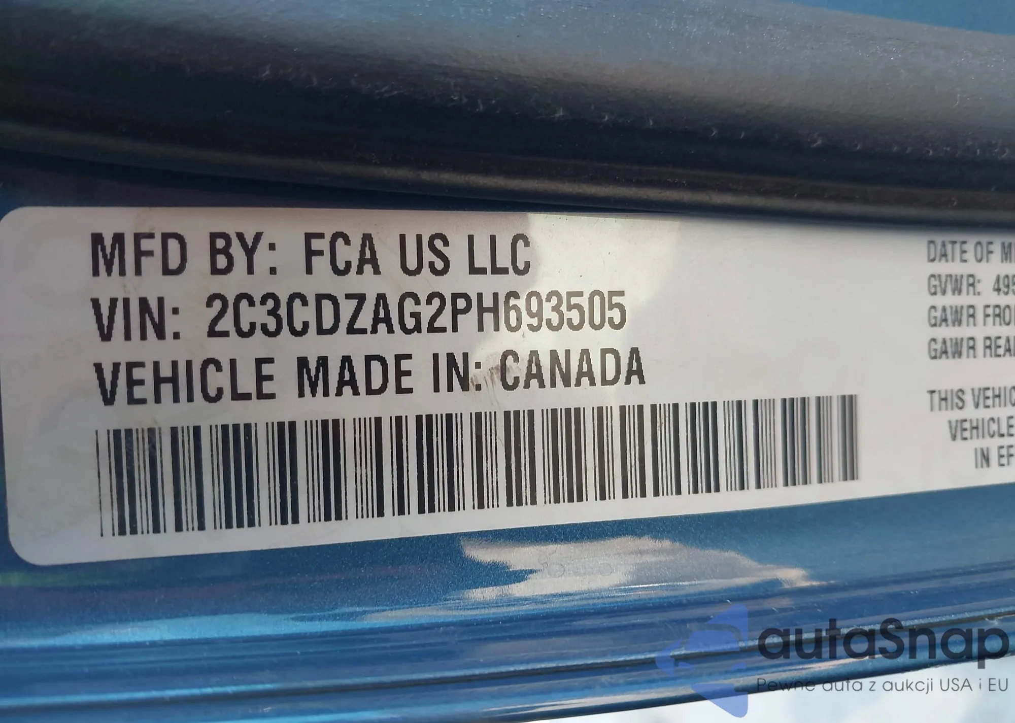 VIN: 2C3CDZAG2PH693505