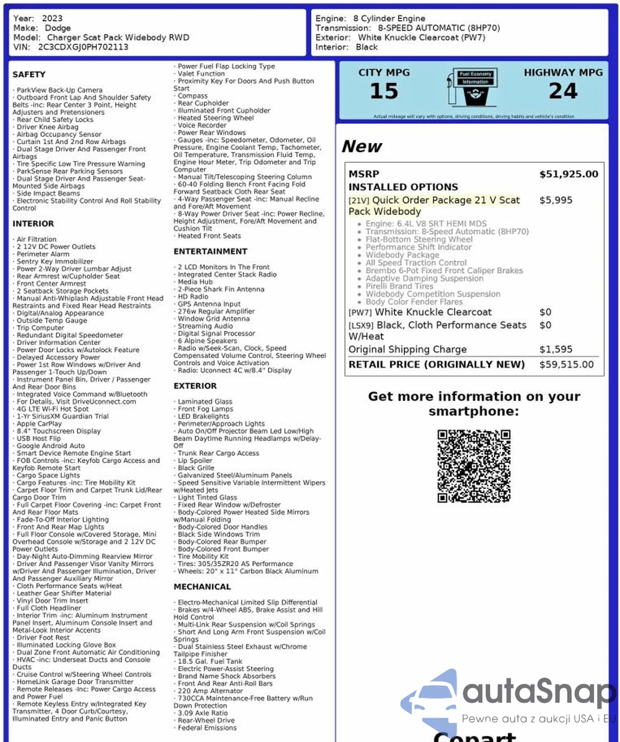 The car Dodge Charger 2023 (VIN 2C3CDXGJ0PH702113) is sold by an unverified seller. We recommend checking the Carfax report and confirming registration possibilities before purchase.