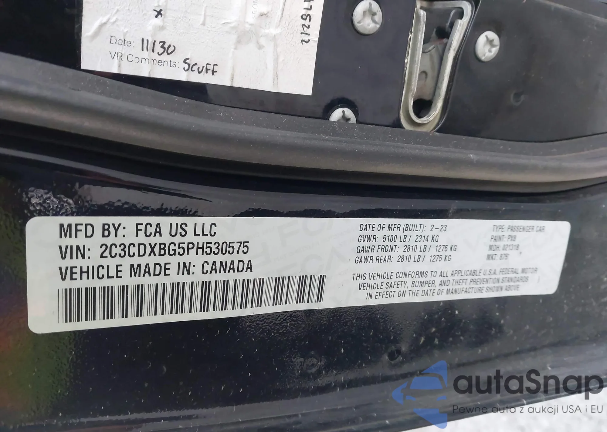The car Dodge Charger 2023 (VIN 2C3CDXBG5PH530575) has already been auctioned 1 times and/or is sold by an unverified seller. We recommend checking the Carfax report and confirming registration possibilities before purchase.
