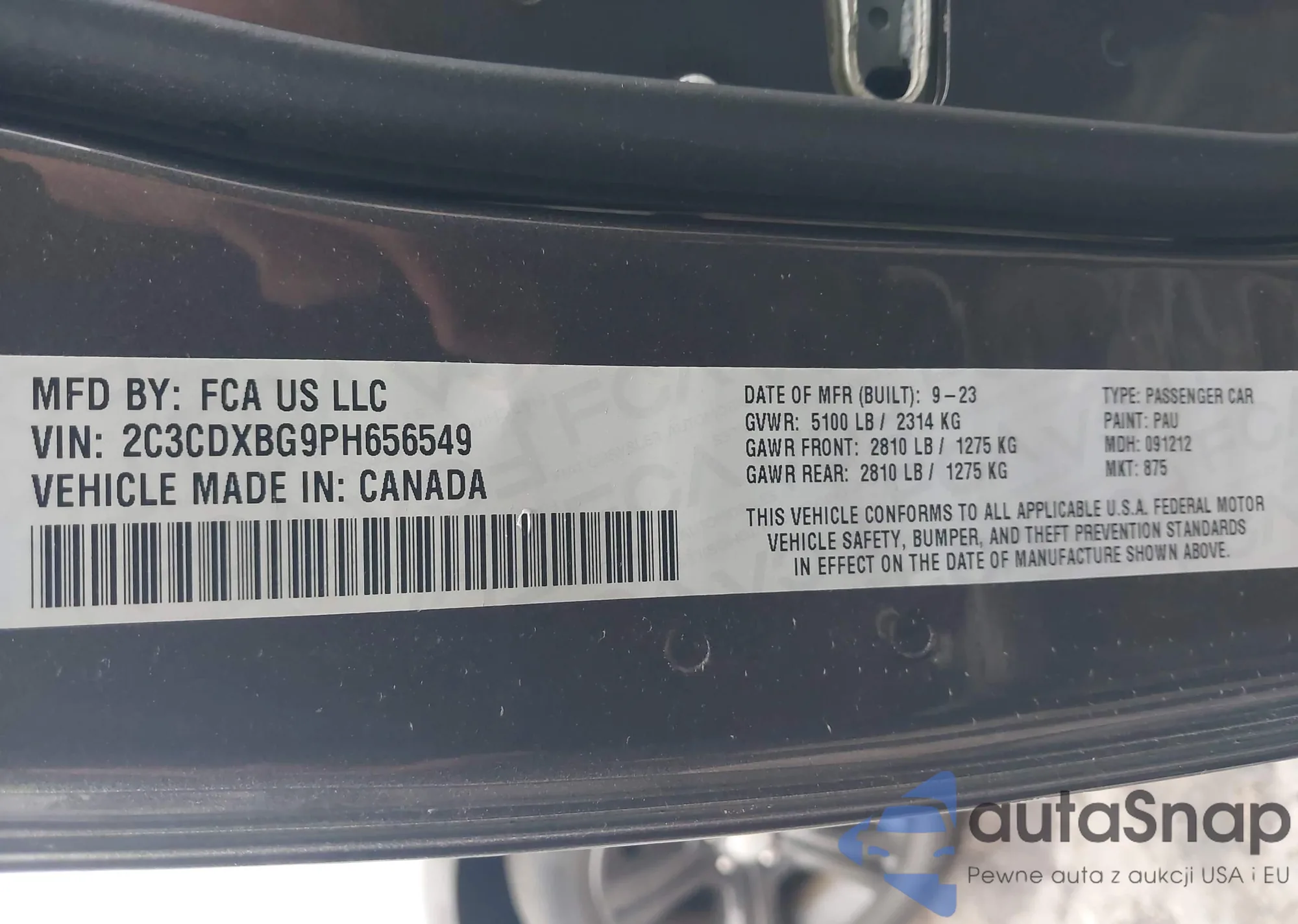 The car Dodge Charger 2023 (VIN 2C3CDXBG9PH656549) has not been auctioned before. The documents are clean, and the mileage matches or is below the market average. Sold by an insurance company – we recommend purchase. Delivery to the port will take approx. 6–8 weeks.
